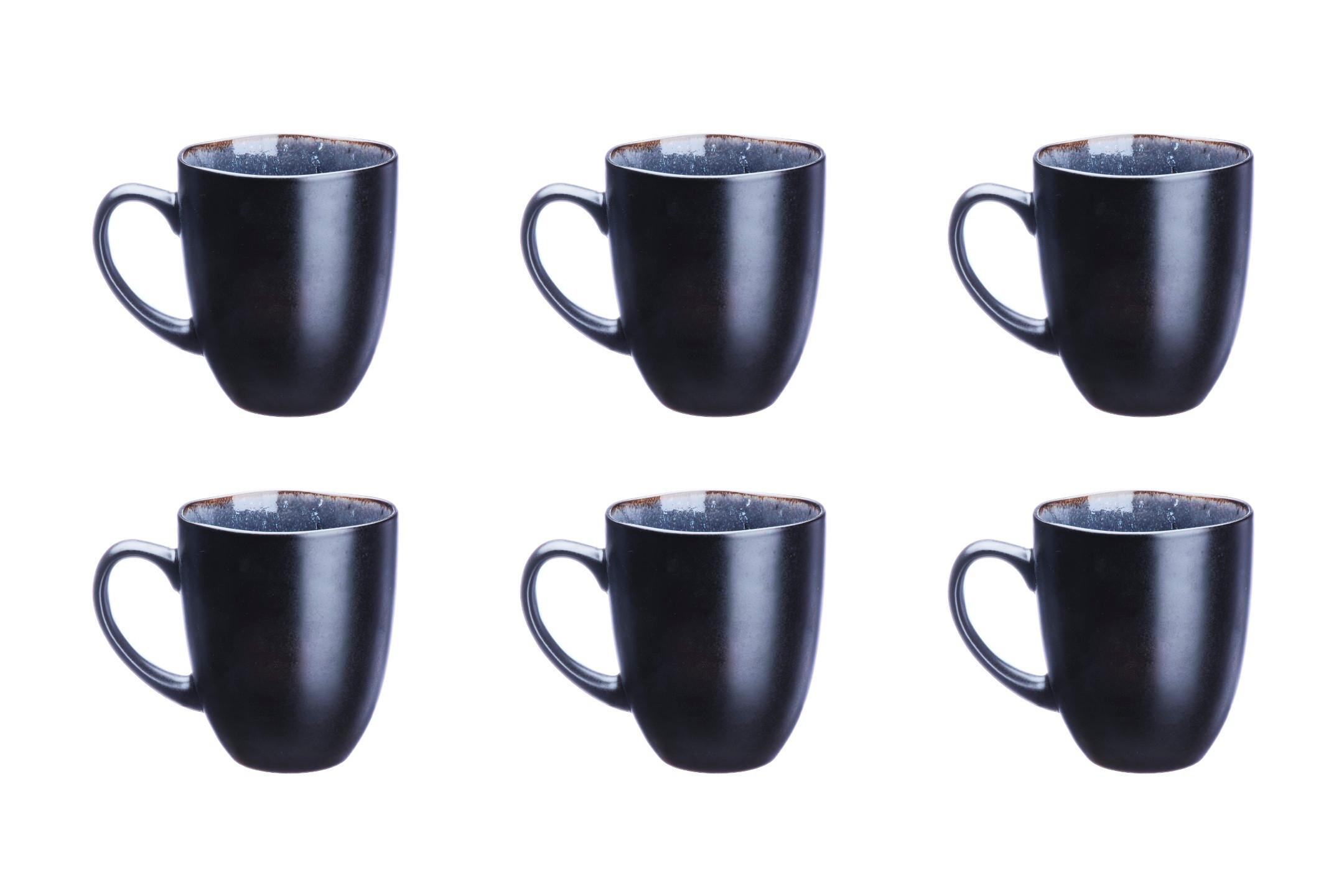 Questa tazza di grande capacità è tanto bella da vedere quanto comoda da usare. Il suo ampio manico facilita la presa senza scottarsi, la sua capacità di 40 cl è molto ampia e il suo design è unico. Per quanto riguarda la sua produzione, dopo una prima cottura dell'argilla a bassa temperatura, sul gres vengono applicati smalti reattivi di diversi colori, conferendogli un rilievo unico e l'effetto di un cielo stellato. L'aspetto delle sfumature di colore riscontrabili da un pezzo all'altro è il risultato di un sapiente mix artigianale tra le tecniche di cottura e le modalità di applicazione del rivestimento. La collezione IRIS è un sottile mix di semplicità e originalità. Il colore nero all'esterno dona alla tua tavola un tocco elegante e sofisticato, mentre lo smalto reattivo all'interno dona un rilievo profondo e unico. Nella variante Night Blue appare un cielo astrale stellato, creando un'atmosfera bucolica per lunghe serate conviviali - Contiene: 6 tazze 40 cl - Collezione Iris / Declinazione Night Blue - Realizzato in gres con rivestimento reattivo - Blu scuro - Lavabile in lavastoviglie. adatto al microonde e al forno (180°C) - Dimensioni di un pezzo (L x P x A) 9,5 x 9,5 x 11 cm / Capacità 40 cl - Fornito in confezione infrangibile