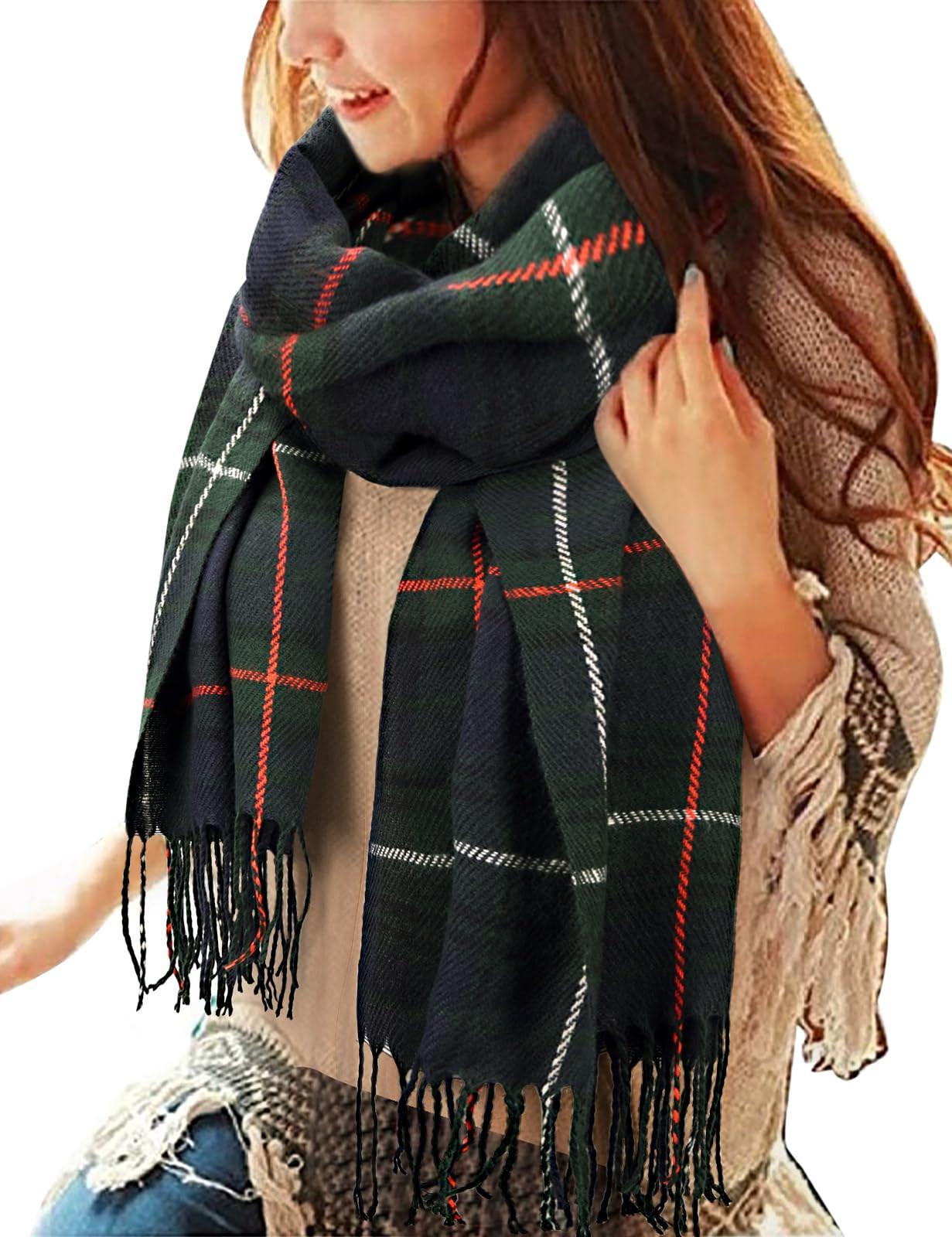 Only-bags.store, Sciarpa Pashmina Invernale a Quadri con Nappe