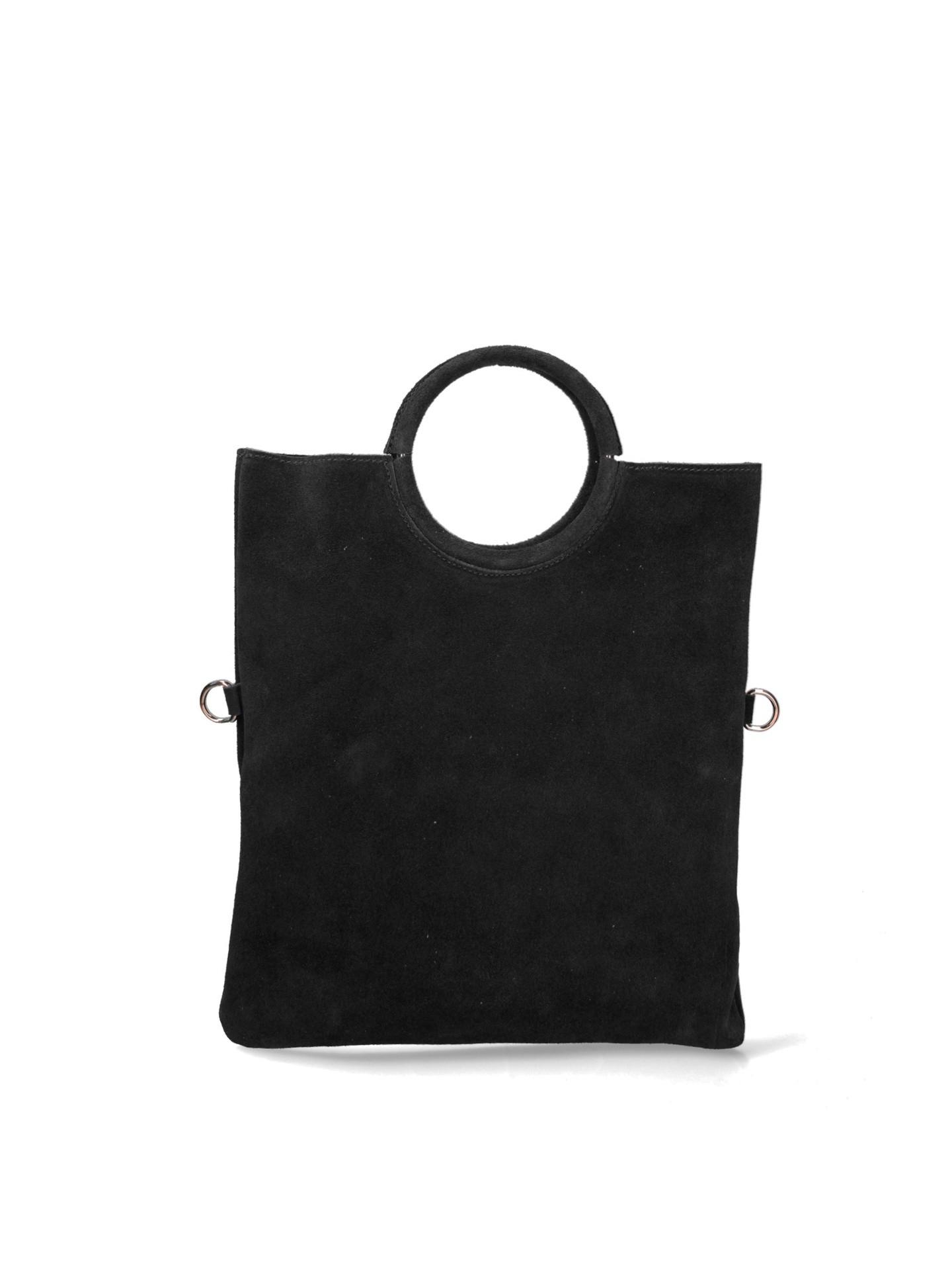 Questa borsa a mano da donna, realizzata in Italia, presenta un'esclusiva maniglia circolare, che offre un'estetica distintiva e moderna. Il design include anelli a D sui lati, che offrono versatilità per attaccare una tracolla o altri accessori.