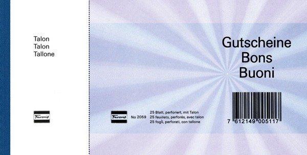 Favorit FAVORIT Geschenk-Gutscheine D/F/I 2059blau blau,20.5x10.5cm,Block à 25Bl.