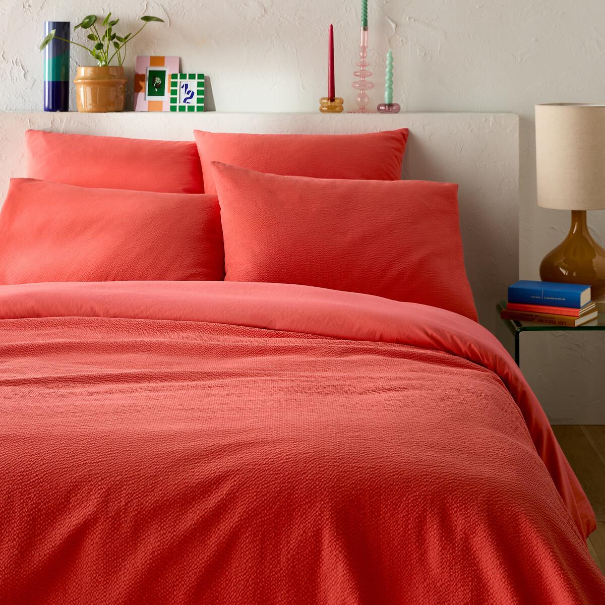 Il copripiumino Seersucker presenta una struttura in cotone a nido d'ape su un lato e cotone prelavato morbido sull'altro, offrendo una sensazione meravigliosamente confortevole. Questo design è di La Redoute Intérieurs.