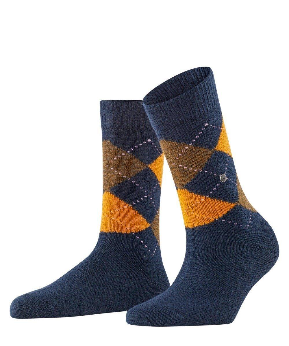 Le calze Whitby sono accessori classici ed eleganti. Realizzate all'83% in acrilico e al 17% in poliammide, queste calze da città offrono comfort e traspirabilità ottimali per una giornata in ufficio o una serata in città. Le calze presentano un tradizionale motivo argyle, con disegni a forma di diamante nelle tonalità giallo ocra e marrone chiaro. Linee punteggiate bianche incorniciano i motivi, aggiungendo un tocco di contrasto al design. Un piccolo emblema metallico è visibile su una calza vicino alla caviglia. Le calze Whitby sono ideali per l'uso quotidiano o per scarpe eleganti.