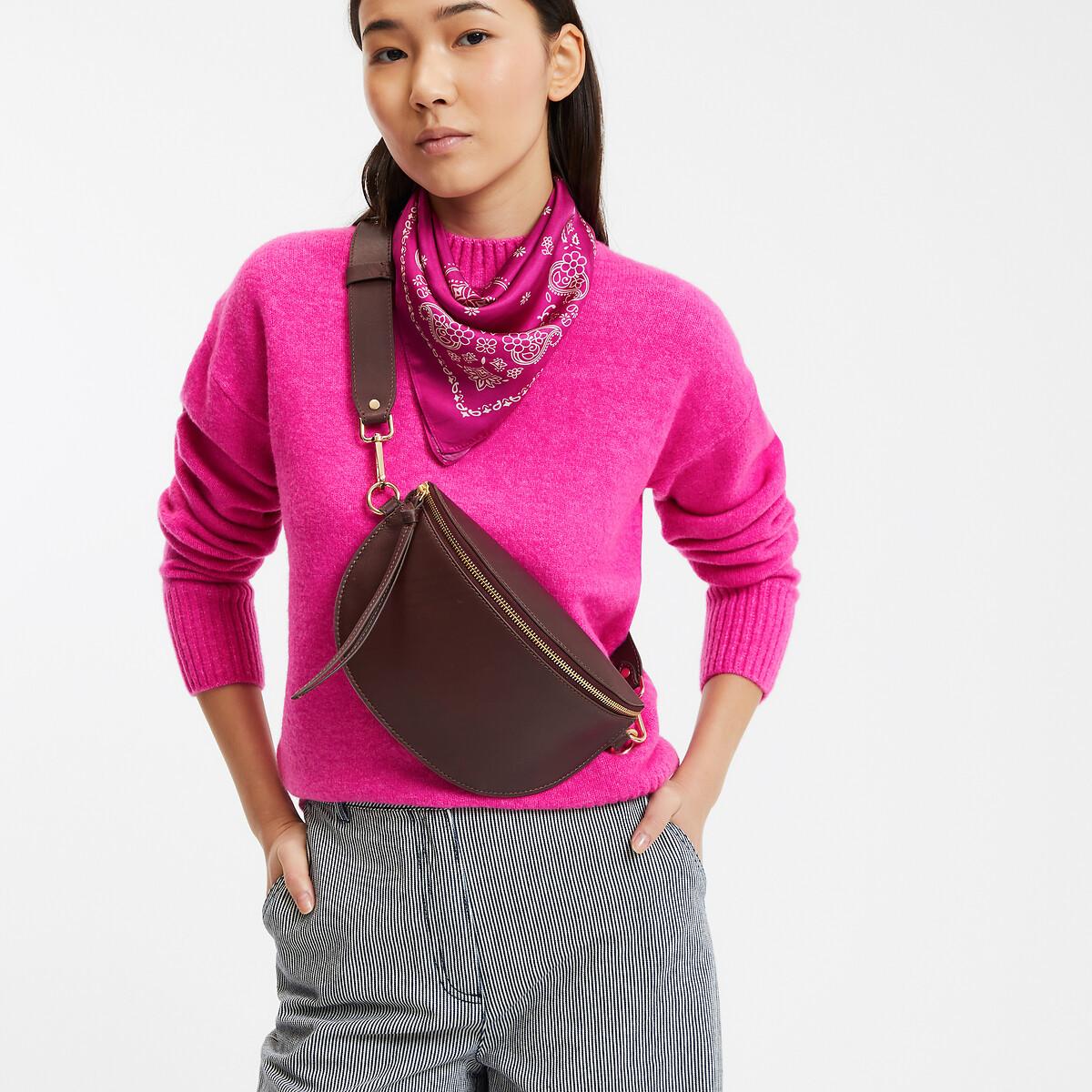 Questa borsa a banana è realizzata in pelle di alta qualità, offrendo un accessorio elegante e pratico. Il suo design curvo conferisce un'estetica moderna, mentre la tracolla regolabile assicura una vestibilità confortevole.