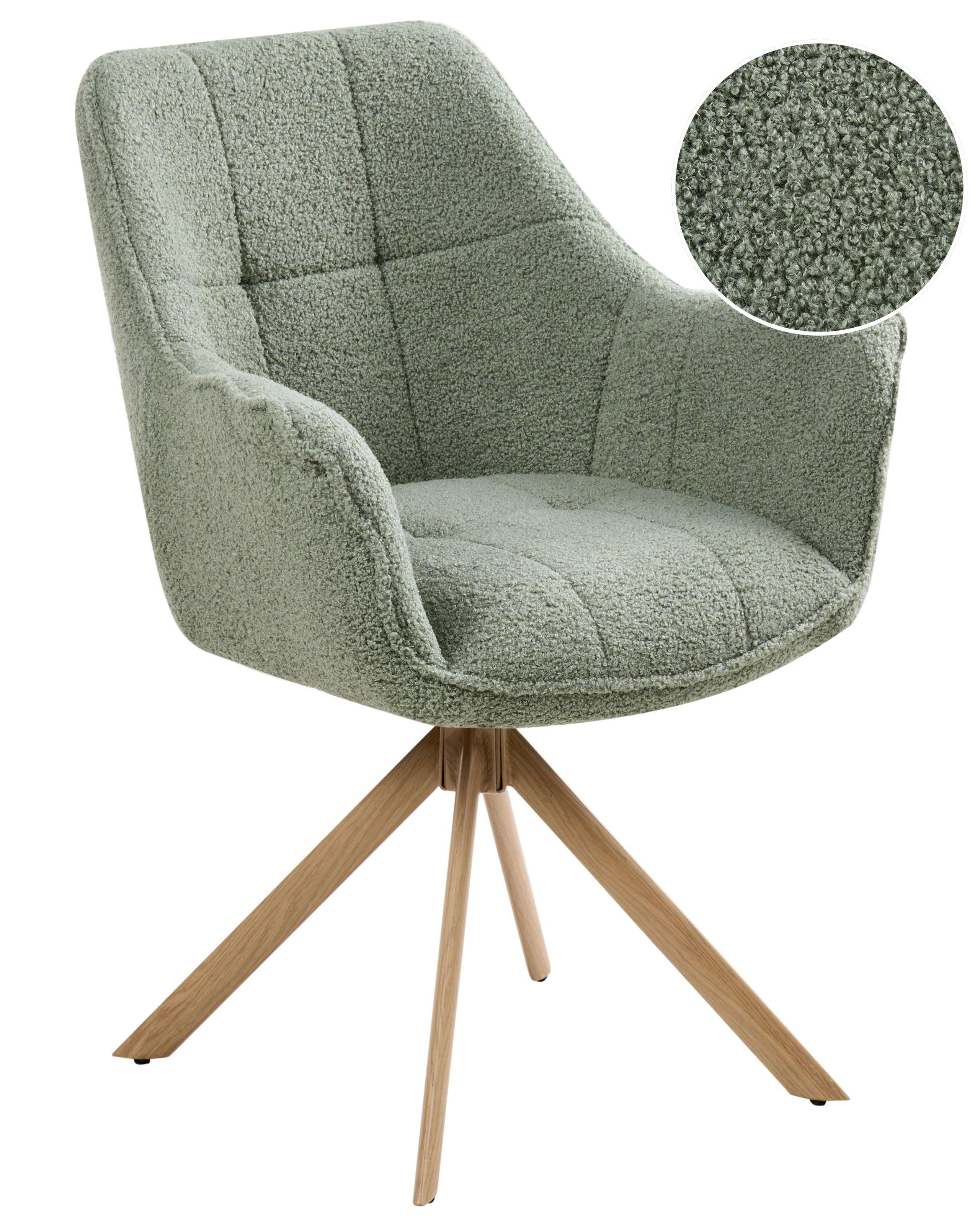 Poltrona Accent 360°. Vivi il massimo comfort e la massima flessibilità con questa affascinante sedia girevole da pranzo. Il sedile profondo e confortevole è rivestito in morbido tessuto bouclé, caratterizzato dalla sua distintiva trama nodosa. La base unica è composta da gambe in ferro con finitura speciale a trasferimento termico, che riproduce l’aspetto del legno garantendo al contempo alta durabilità. La pratica funzione girevole a 360 gradi aggiunge massima funzionalità, rendendo questa sedia comoda quanto elegante.