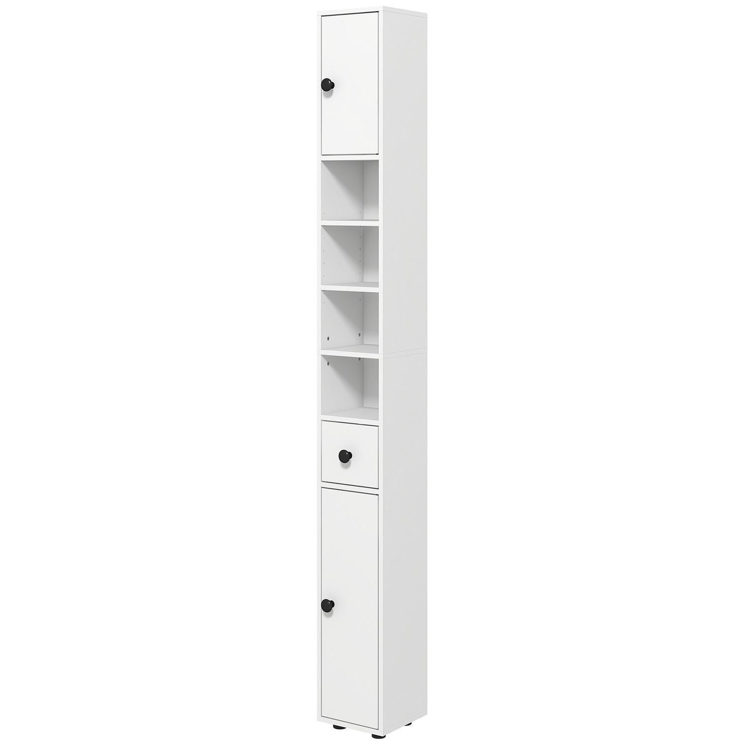 Northio, Mobiletto da bagno, 4 ripiani, cassetto, truciolare, design sottile, bianco