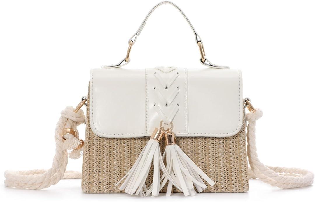 Only-bags.store Borsa Crossbody Mini con Tracolla in Corda Paglia Intrecciata Decorazione Nappa
