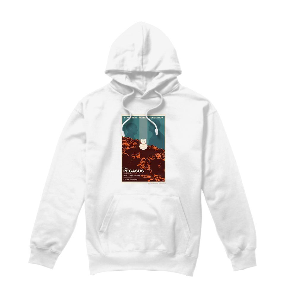 Questa felpa con cappuccio presenta una stampa grafica ispirata a "Star Trek: The Next Generation" Stagione 7, Episodio 12, intitolato "The Pegasus". Il design cattura una scena drammatica dell'episodio, rendendola un capo distintivo per i fan.