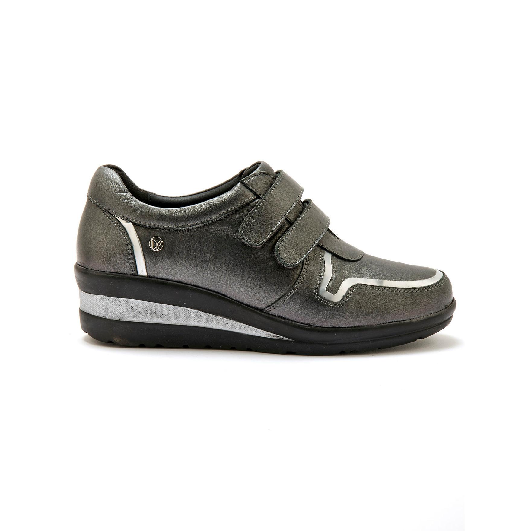 Le derbies in pelle Pediconfort aumentano un po' di altezza e adottano un aspetto trendy, accentuato da dettagli metallici. Facili da indossare grazie al loro strap in velcro, sono ultra confortevoli, con la loro soletta in schiuma spessa che attutisce gli urti durante la camminata.