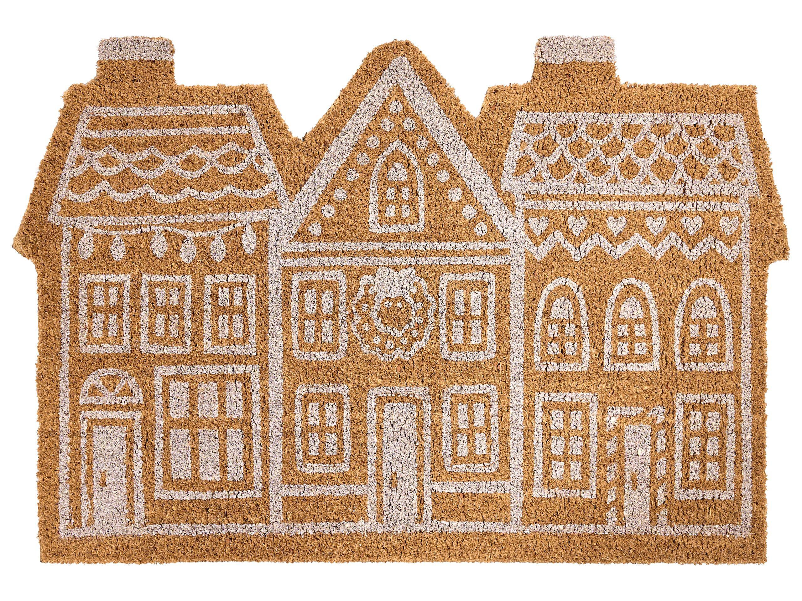 Zerbino natalizio con motivo villaggio di Ginerbread. Uno zerbino in cocco con design festivo è la scelta perfetta per aggiungere un tocco di allegria natalizia all’ingresso di casa. Il motivo a casetta di pan di zenzero accoglie te e i tuoi ospiti già sulla soglia, creando subito un’atmosfera gioiosa. Realizzato in fibre di cocco resistenti, è ideale per pulire le scarpe invernali da neve e sporco, mantenendo l’ambiente interno ordinato e accogliente.