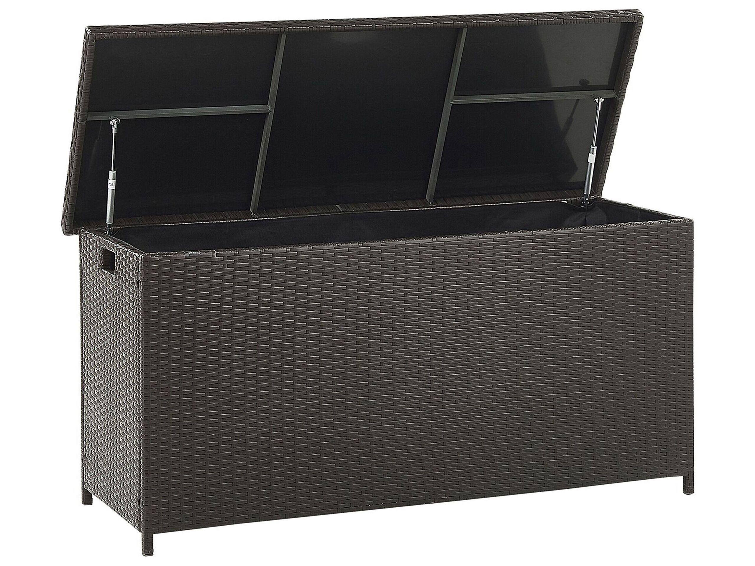 Pratico e ampio baule da esterno. Elegante e molto capiente, questa pratica cassa panca è la scelta ideale per il giardino o il balcone. Estremamente versatile, è utilissima per contenere gli attrezzi per il giardinaggio, così come cuscini o giocattoli in cameretta. Resistente alle intemperie, è caratterizzata da un solido telaio in acciaio e da un rivestimento in rattan sintetico antipolvere, di altissima qualità. Il comodo meccanismo telescopico insieme alle pratiche maniglie poi, la rendono davvero facile da usare e da spostare.
