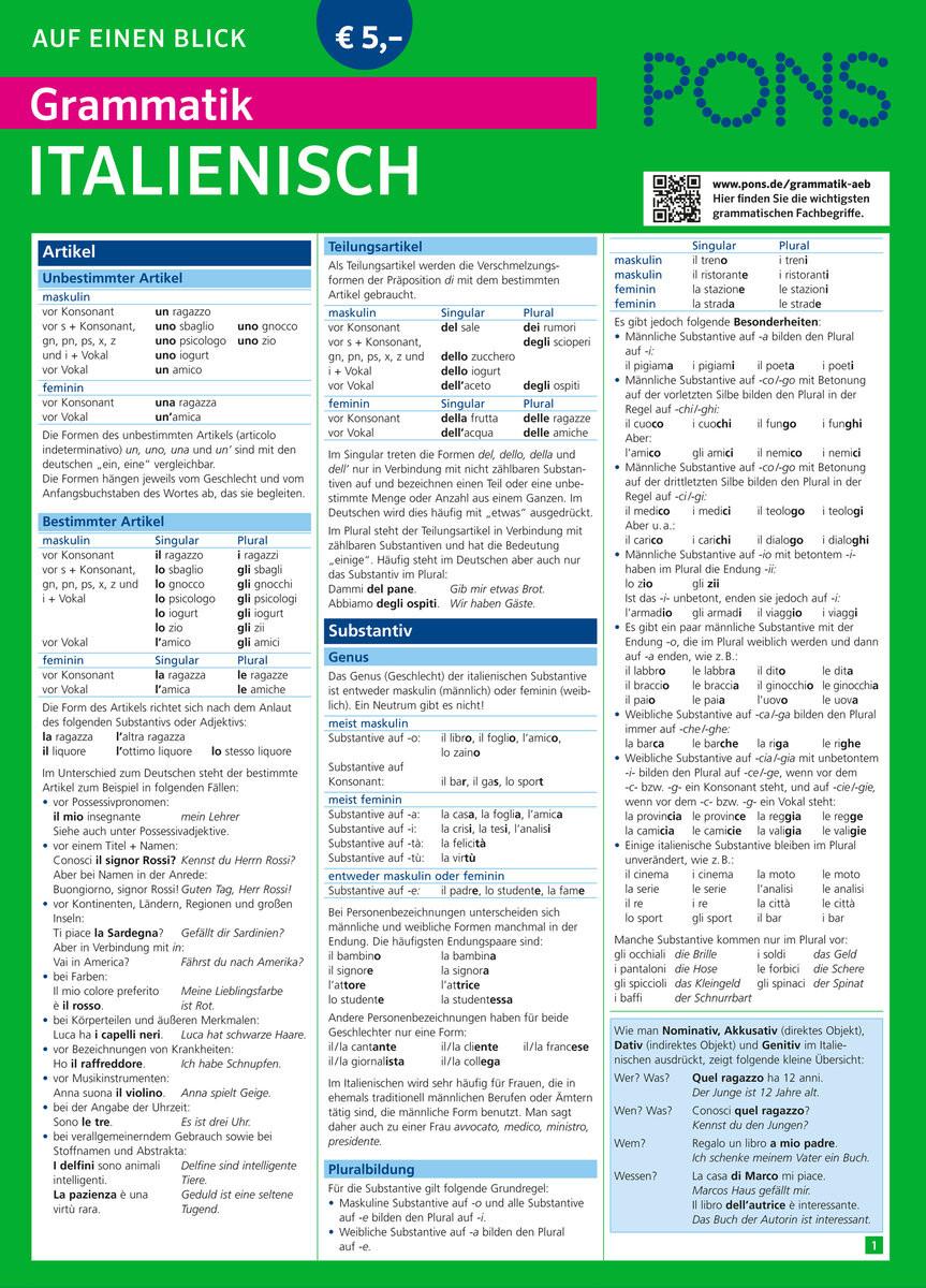 Pons  PONS Grammatik auf einen Blick Italienisch