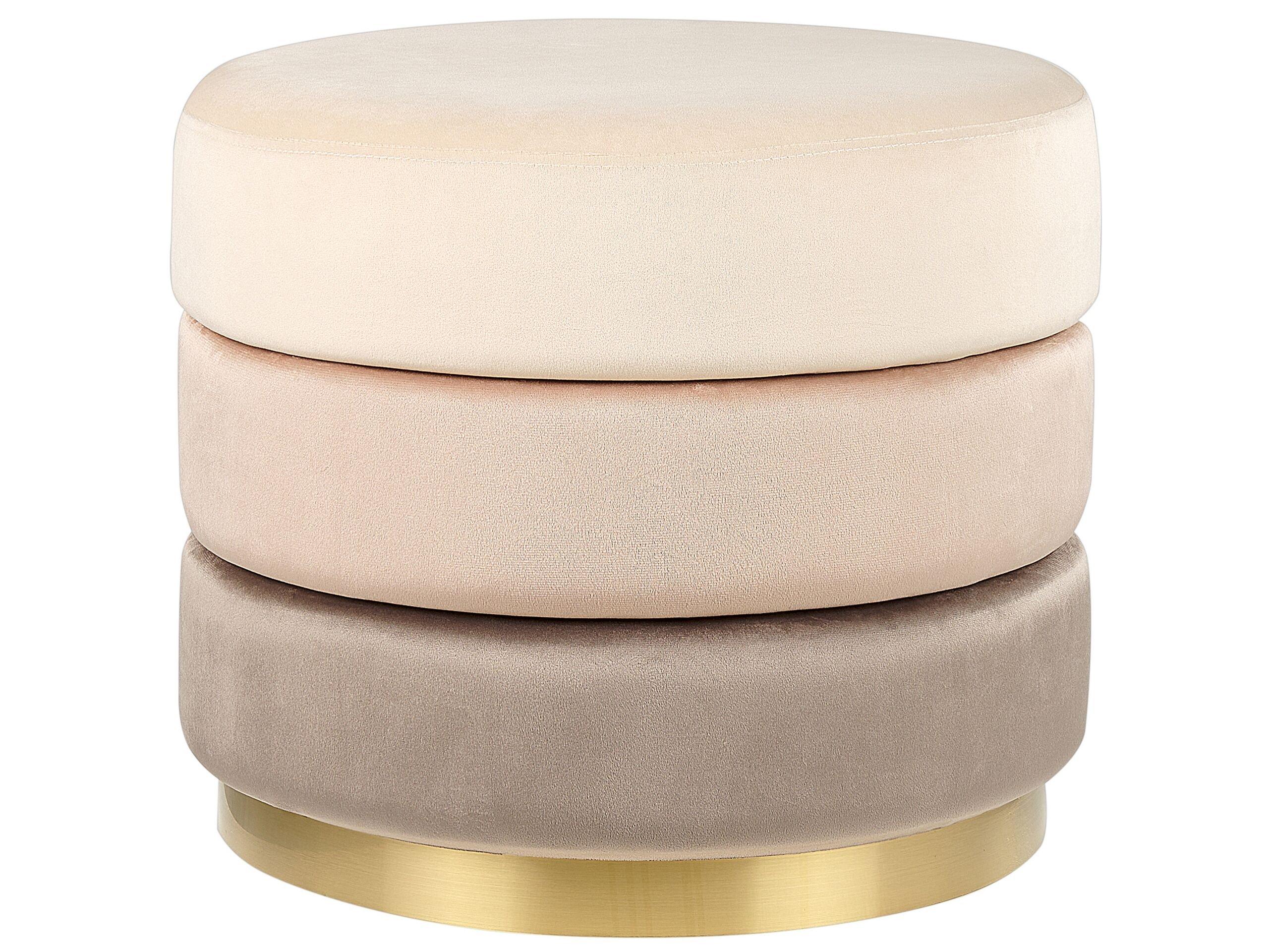 Pouf rivestito imbottito. Tuffati nel fascino accattivante di questo eccezionale pouf, una straordinaria fusione di glamour moderno. Avvolto in un sontuoso tessuto di velluto che passa con grazia attraverso un'incantevole combinazione di colori sfumati. La sua base in metallo dorato aggiunge un tocco di sfarzo, al tuo arredamento. Con il suo design unico e il suo comfort, questo pouf promette di essere il fulcro della raffinatezza in qualsiasi stanza.