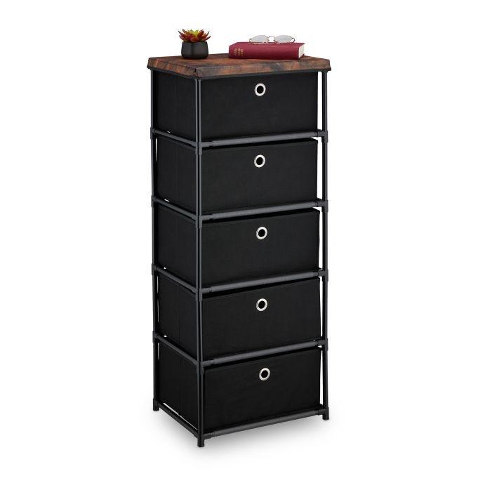 - Materiale: Struttura in metallo nero, ripiano effetto legno vintage, cassetti in tessuto