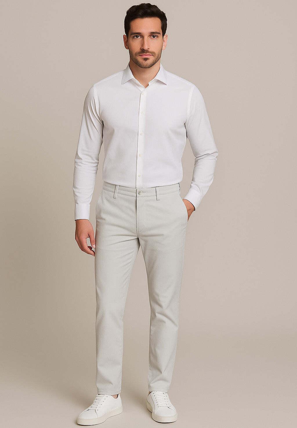 I pantaloni BONO in grigio chiaro combinano gabardine estivo con un comfort eccezionale e una lavorazione di alta qualità. La tintura reattiva garantisce colori intensi e duraturi, mentre la fine smerigliatura conferisce al tessuto una sensazione piacevolmente morbida e fresca. Perfetti per le giornate calde e versatili da abbinare, sia casual che eleganti.