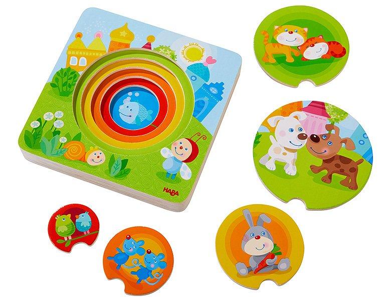 HABA Holzpuzzle Kunterbunte Tierkinder (5Teile)