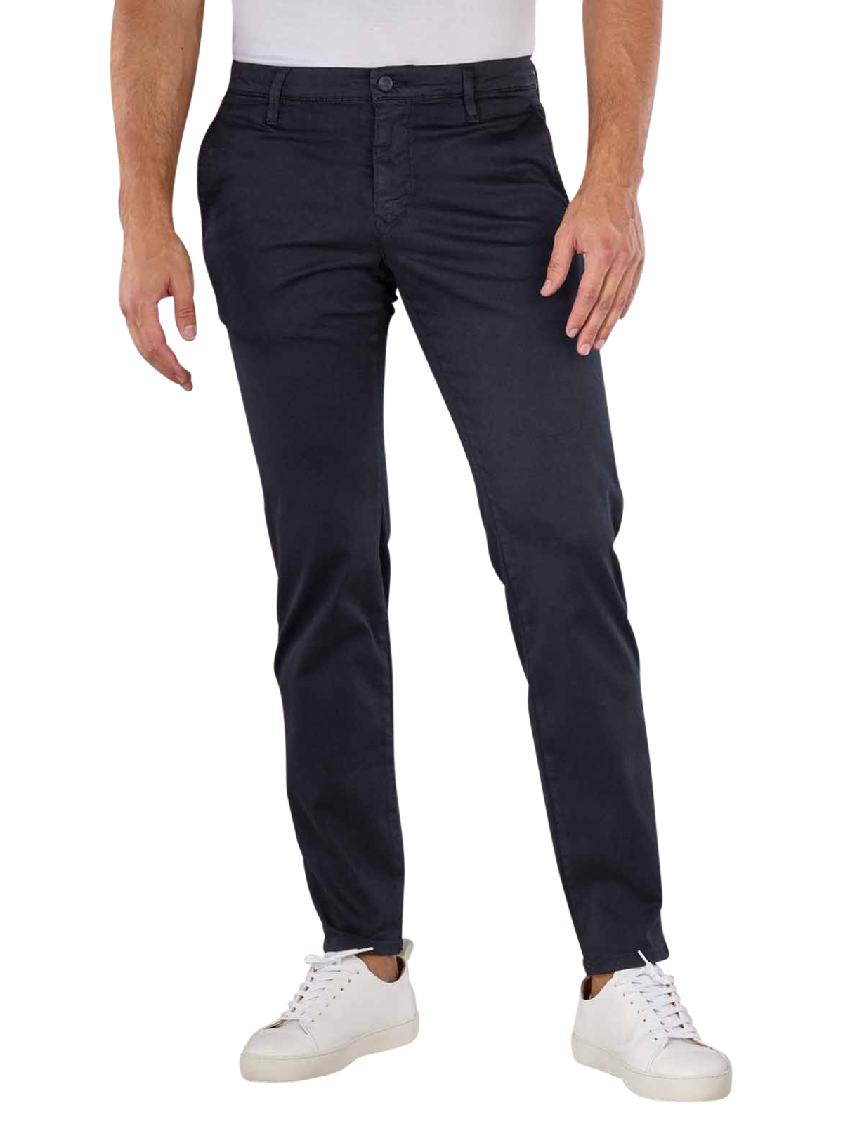 I pantaloni Mac Driver Chino Slim Straight in Midnight Blue sono chino da uomo blu scuro con gamba dritta e vita media. I pantaloni presentano un design slim-fit e uno spessore del tessuto standard, offrendo un'elasticità confortevole.