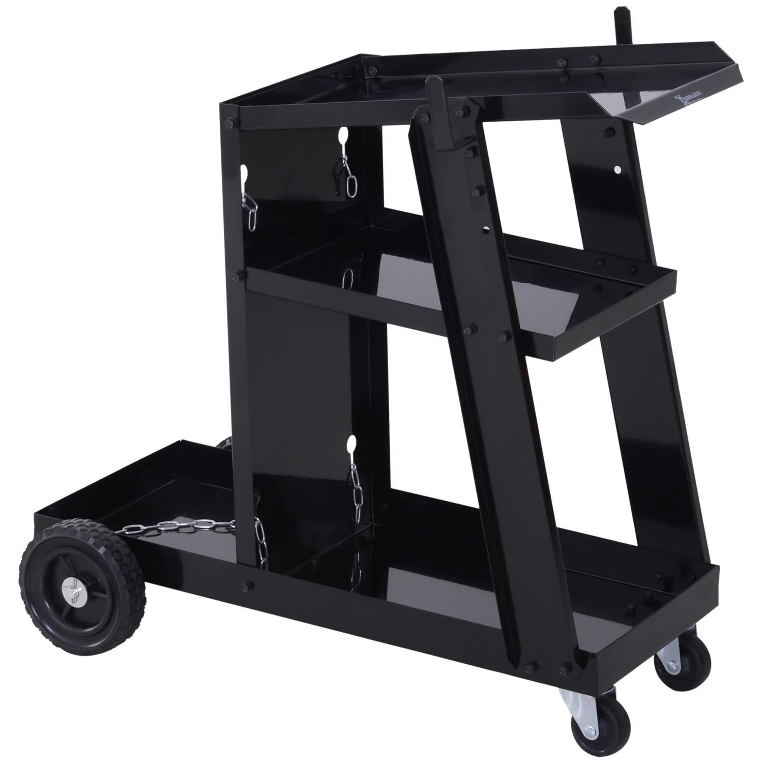 Northio Carrello Per Saldatura, Carrello Per Saldatrice Con Ripiani 3, Carrello Per Bombole Di Gas, Catena Di Sicurezza, Nero, 71X39X70 Cm