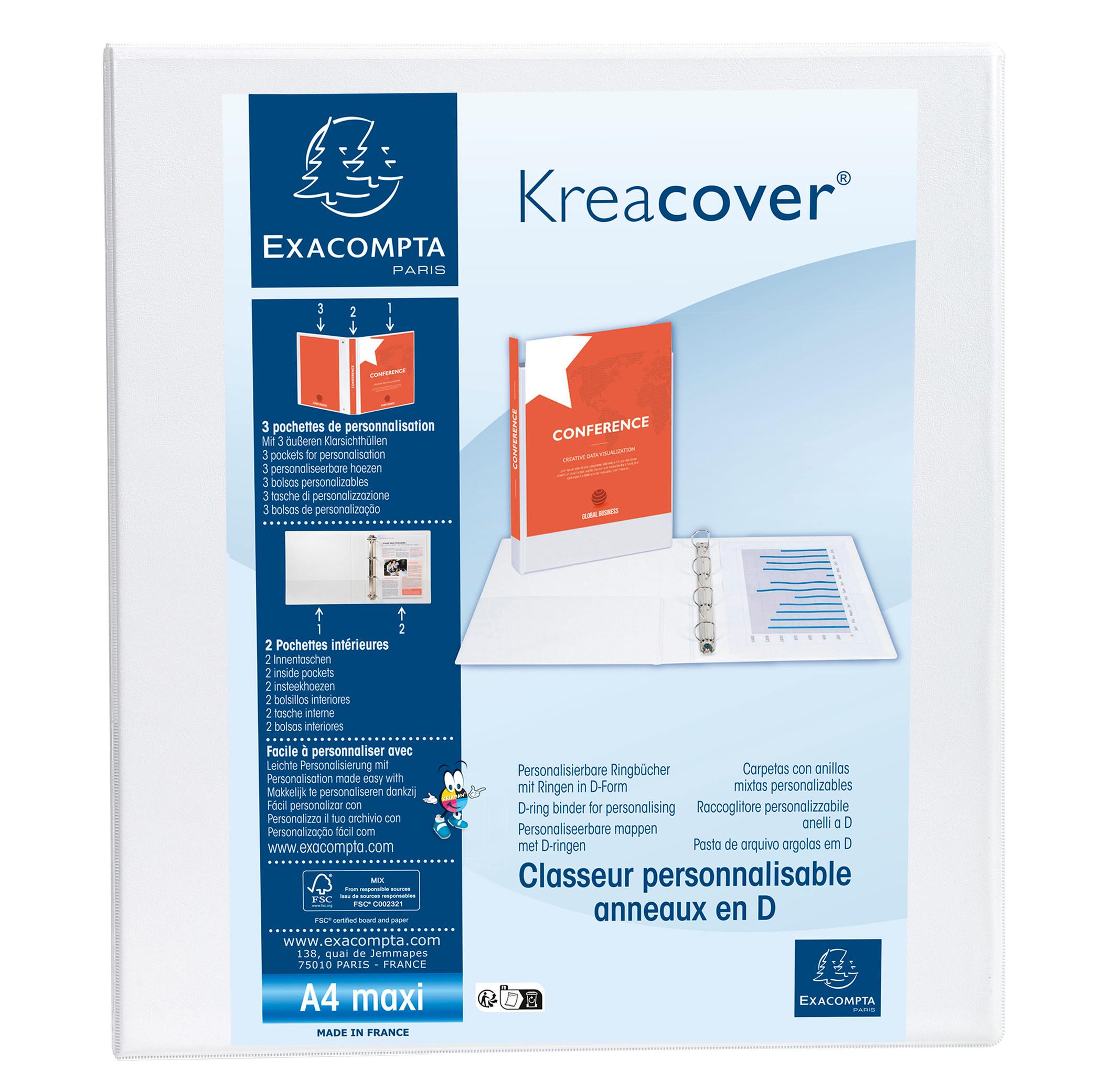 Exacompta, Raccoglitore personalizzabile rigido Ppl 3 tasche Kreacover - 2 anelli a D 40mm - A4 maxi - x 10