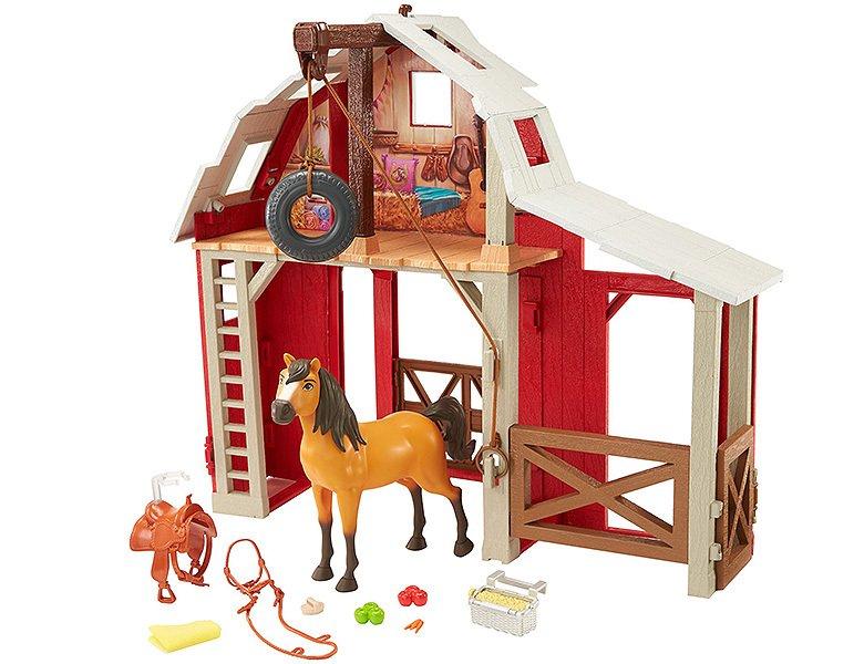 Erleben Sie mit dem Pferdestall Spielset Abenteuer im Reiterhof! Das Set umfasst einen Stall, ein Clubhaus, einen Fütterungsbereich und eine Reifenschaukel, um realistische Pferdepflege nachzuspielen. Die enthaltene Pferdefigur misst ca. 20,32 cm und wird ergänzt durch 10 Zubehörteile wie Sattel, Zaumzeug, Trog und Pflegeutensilien. Ideal für fantasievolle Geschichten und Spielstunden.