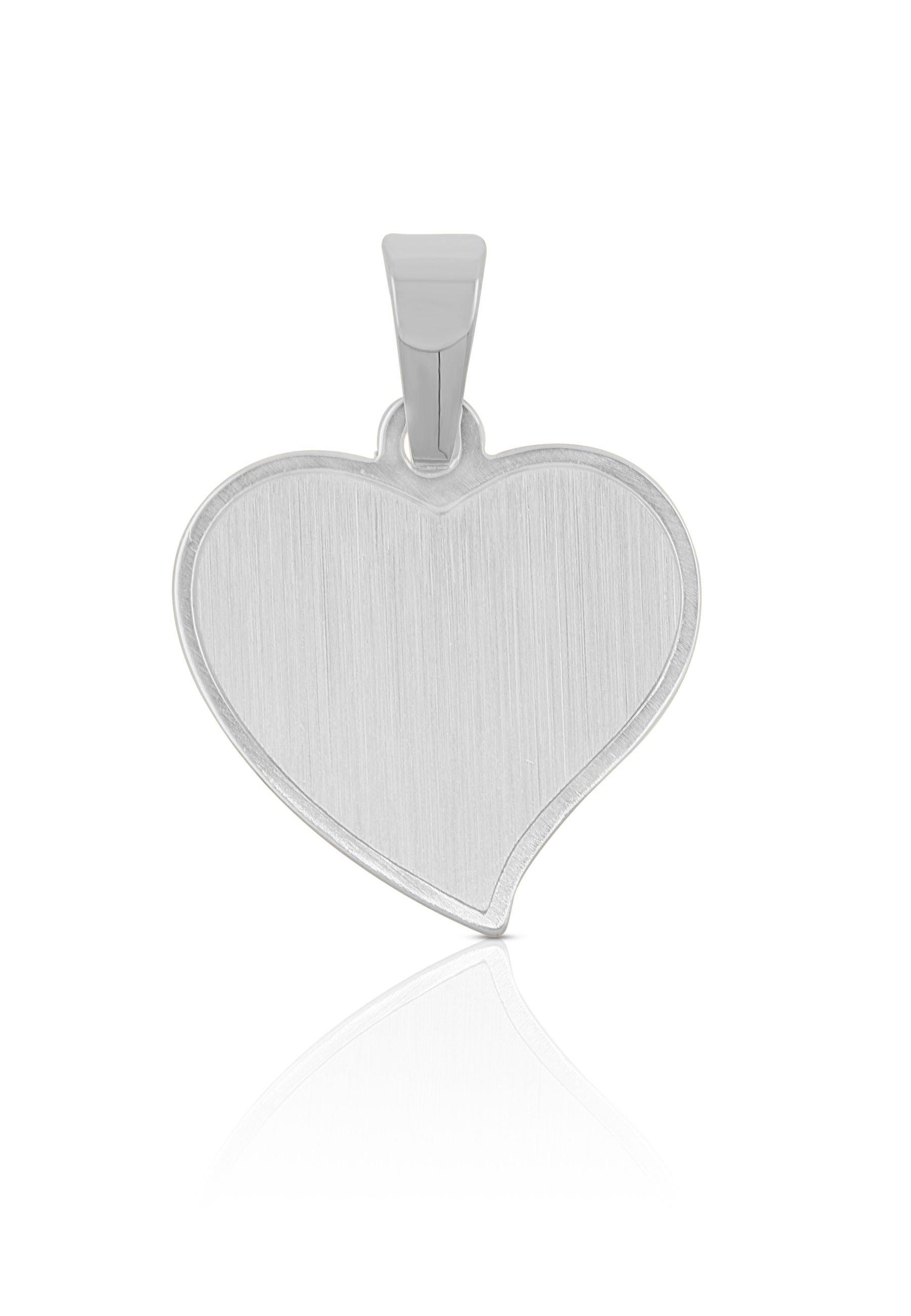 MUAU Schmuck, Anhänger Gravurplatte herzförmig Weissgold 750, 19x15mm