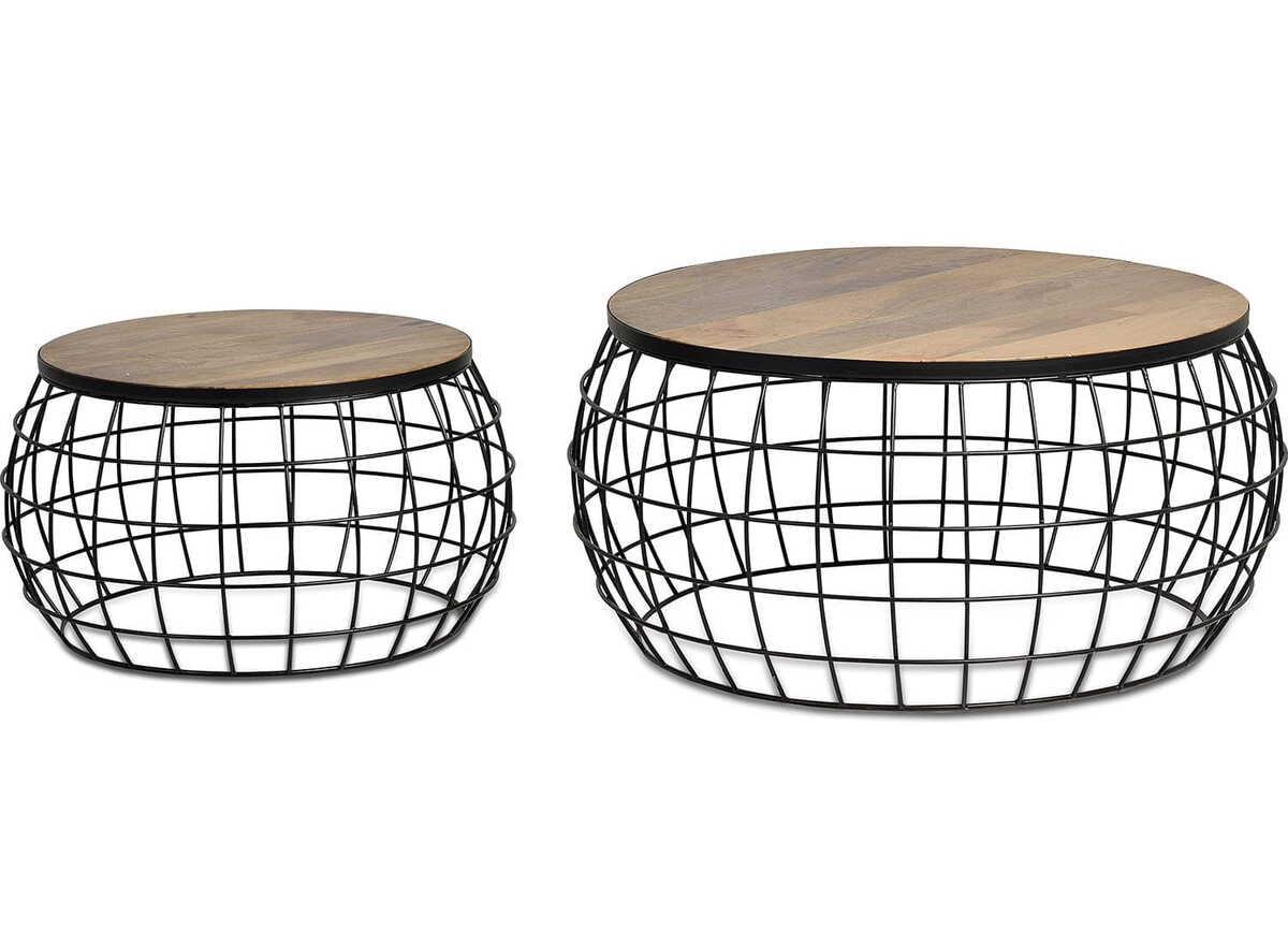 Set di tavolini in legno di mango e ferro - Grande: 76 x 76 x 36 cm - Piccolo: 58 x 58 x 31 cm