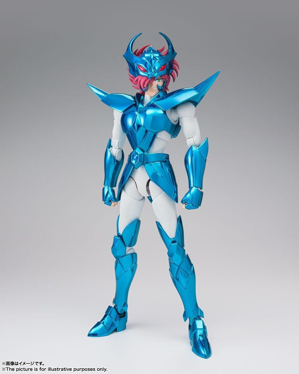 Saint Seiya Myth Cloth EX licensed figurine, with fully articulated plastic body and armour mostly made of metal, adaptable on the armour holder (also called "Object" or "Base"), delivered with the figurine.