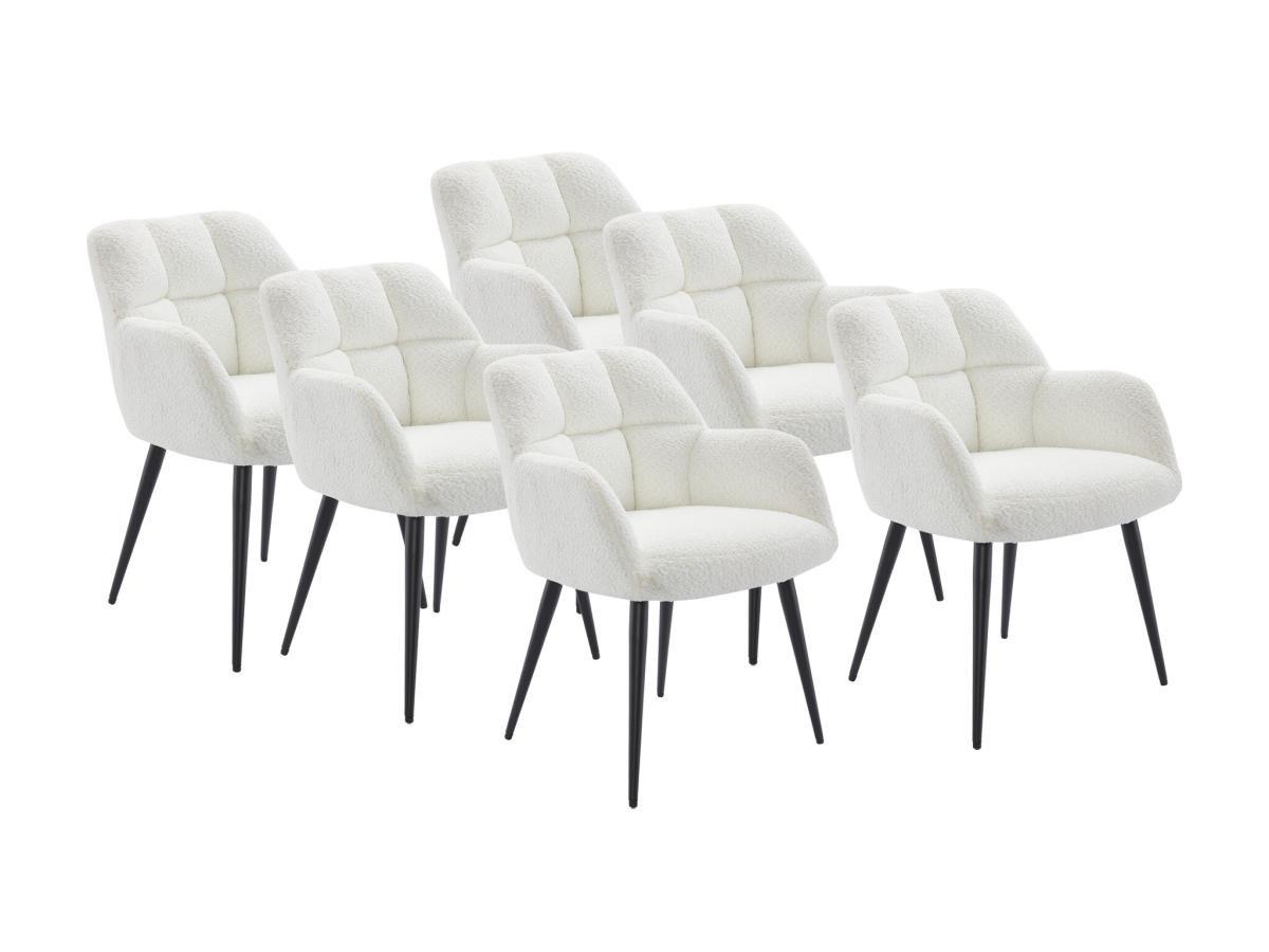 PASCAL MORABITO Sedia con braccioli Tessuto bouclette e Metallo Bianco - Lotto di 6 - PEGA