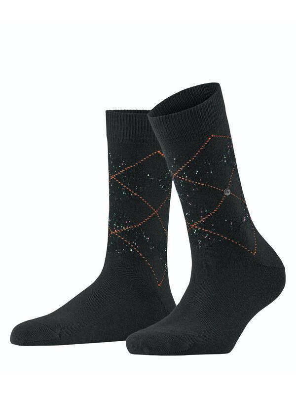 Questi calzini presentano un moderno motivo argyle con un effetto pixelato, aggiungendo un tocco contemporaneo a un design classico. I vivaci accenti neon creano un contrasto sorprendente sullo sfondo scuro, rendendo questi calzini un accessorio elegante per vari outfit.