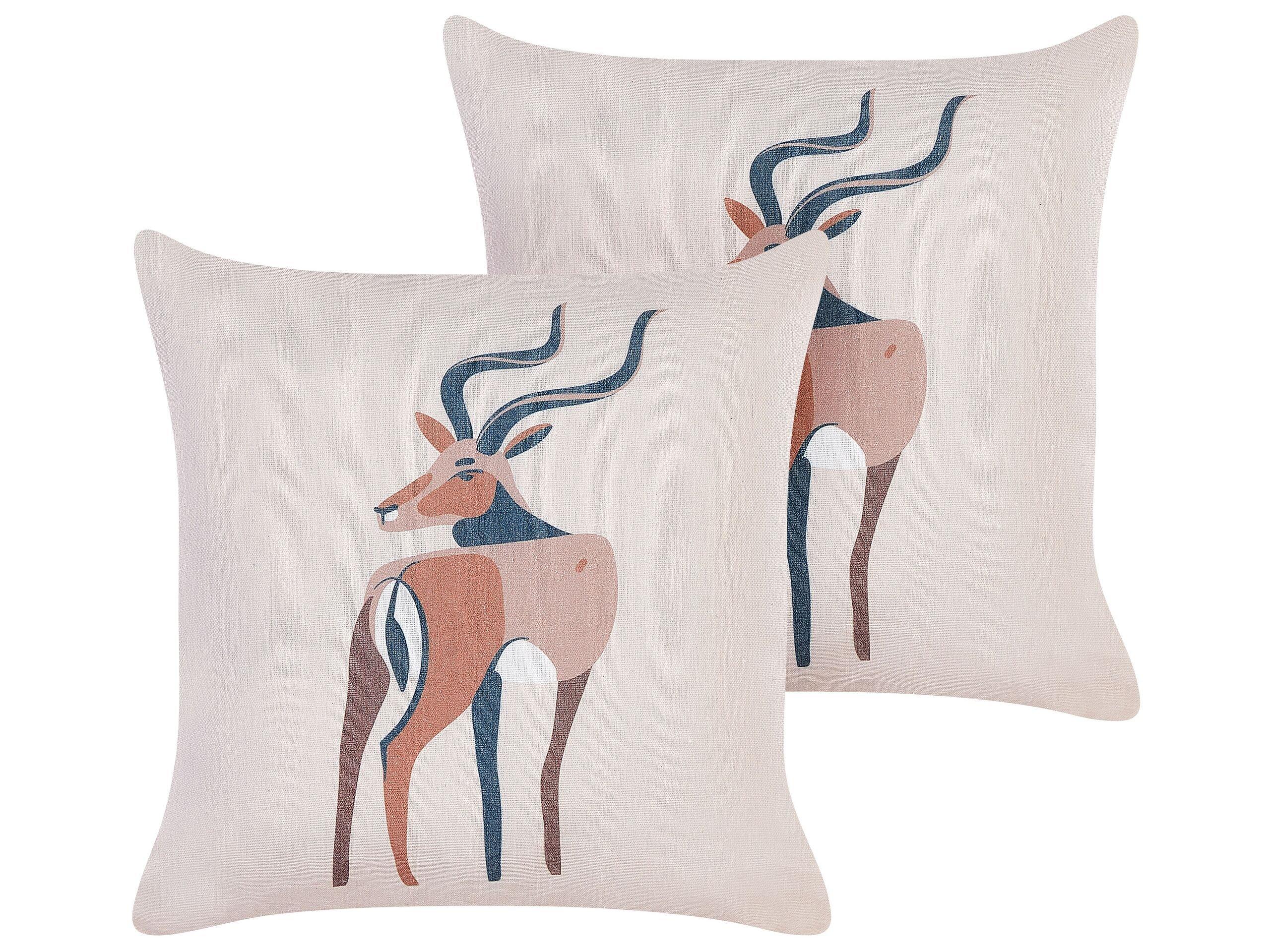 Cuscini con motivo antilope . Introduci un po' di natura selvaggia in casa con questi cuscini. Caratterizzati da un motivo di antilope, questi cuscini diventeranno un intrigante elemento per ogni stanza. Oltre al loro aspetto decorativo, i cuscini sono anche confortevoli e molto imbottiti. Sono inoltre realizzati con materiali morbidi e di alta qualità, grazie ai quali è possibile utilizzarli per rilassarsi.