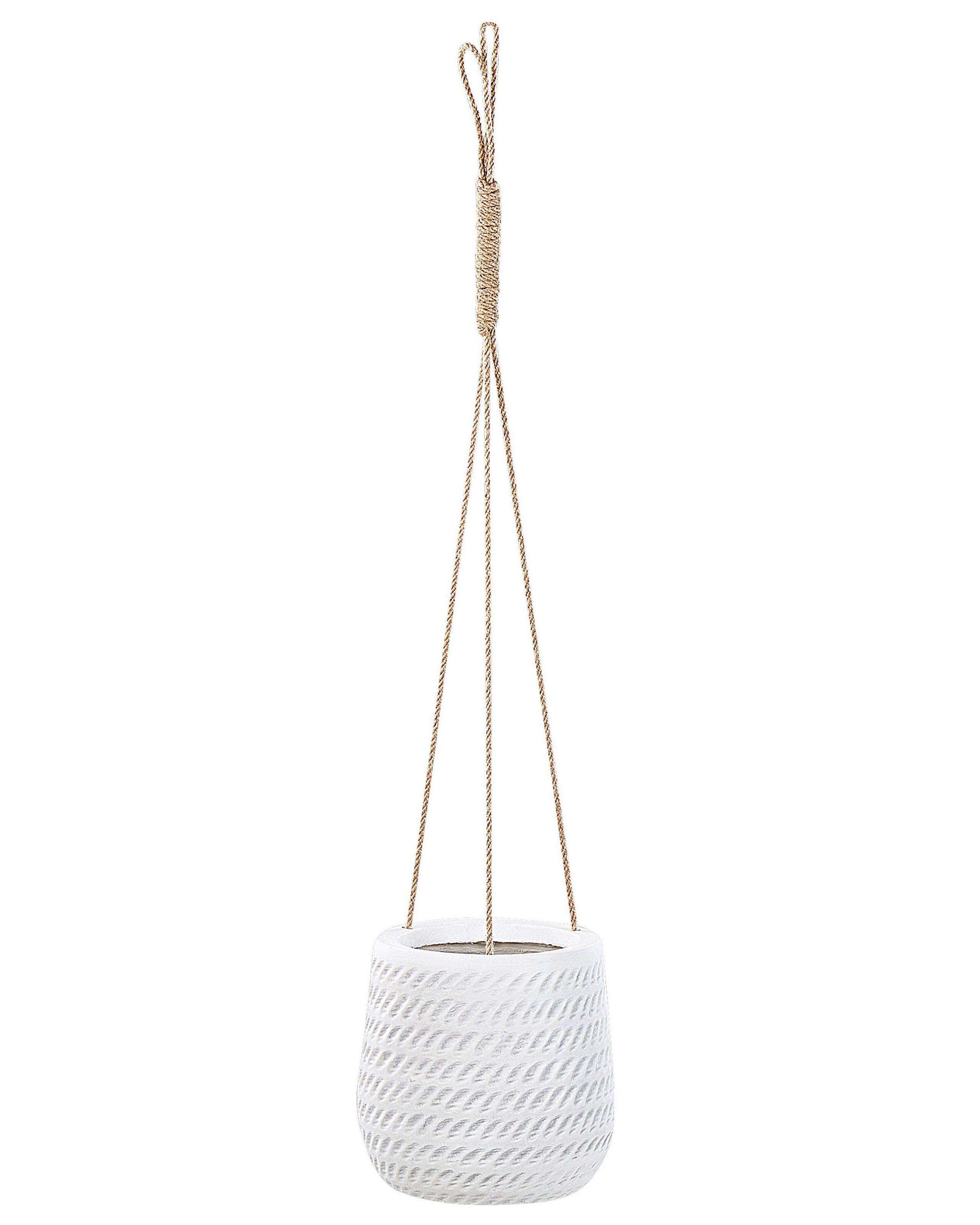 Vaso da fiori sospeso da esterno. Un vaso rotondo per piante che fonde senza sforzo estetica e funzionalità. Realizzato in resistente fibra di argilla, questo vaso presenta un intricato motivo in rilievo che aggiunge un tocco di eleganza a qualsiasi spazio. La finitura leggermente lavata gli conferisce un fascino senza tempo, mentre il design robusto del vaso ne garantisce la resistenza a temperature variabili e ai raggi UV. Completo di un foro alla base, questo vaso garantisce un drenaggio ottimale per le piante, rendendolo una scelta perfetta sia per gli ambienti interni che per quelli esterni.
