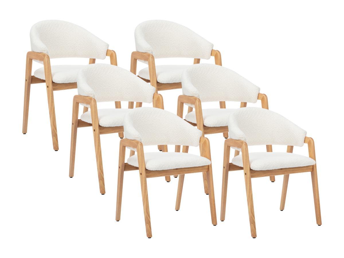 Vente-unique, Sedia con braccioli in Tessuto bouclette e Legno di hevea Bianco - Lotto di 6 - SOLUNA