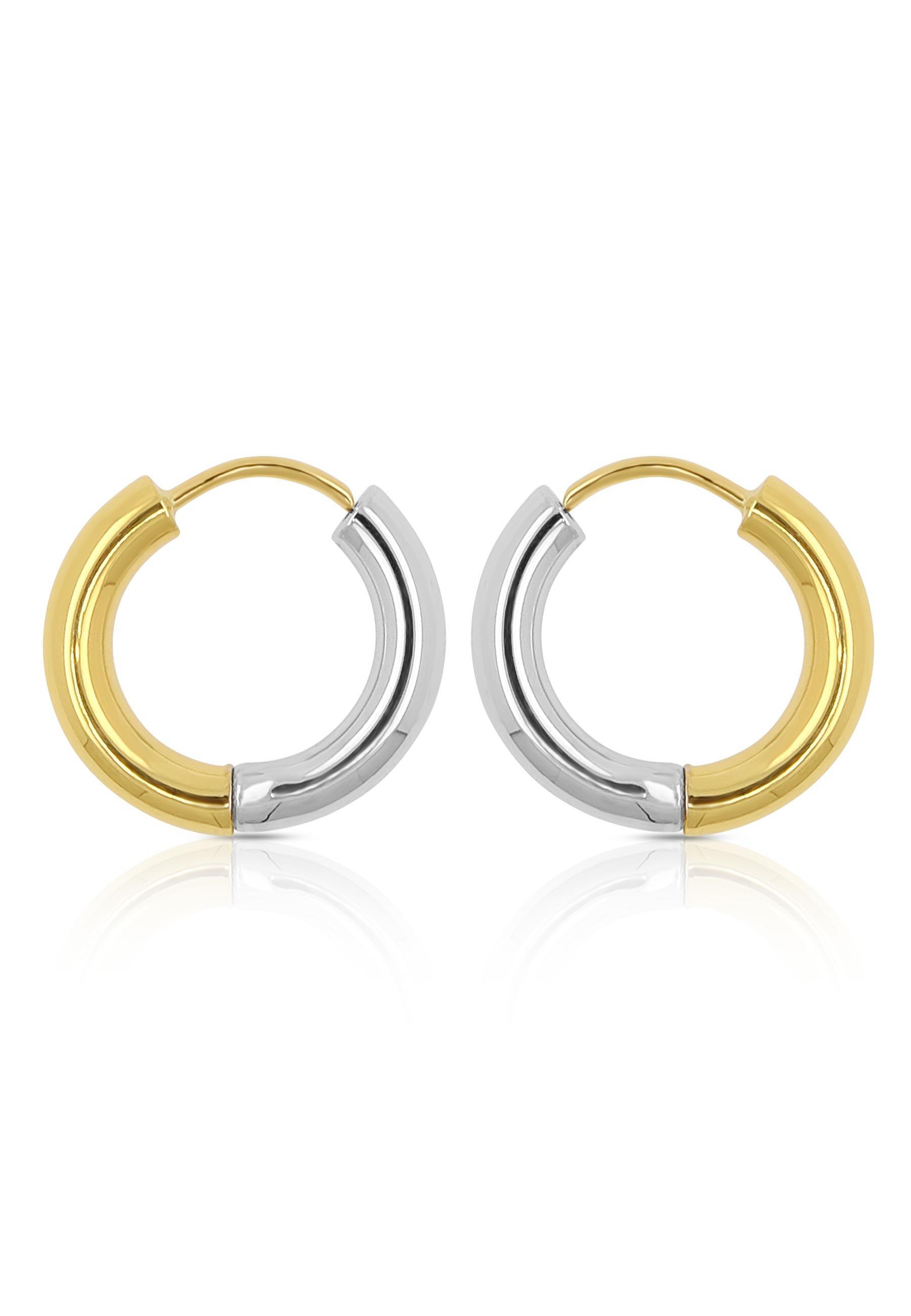 MUAU Schmuck, Creolen Bicolor Gelb-/Weissgold 750 Runddraht 16mm