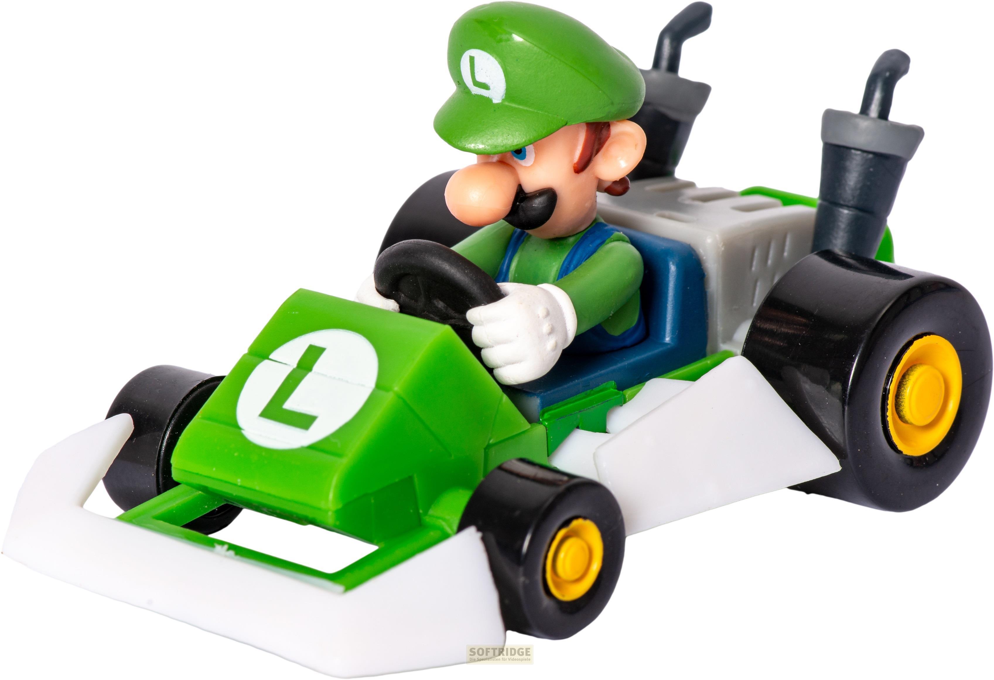 Erleben Sie die Faszination von Kart-Rennen mit diesem detailgetreuen Rennfahrzeug von Luigi. Das Modell misst 6,5 cm und fängt den Charakter und das Design des beliebten Videospiels perfekt ein. Ideal zum Spielen oder Sammeln.