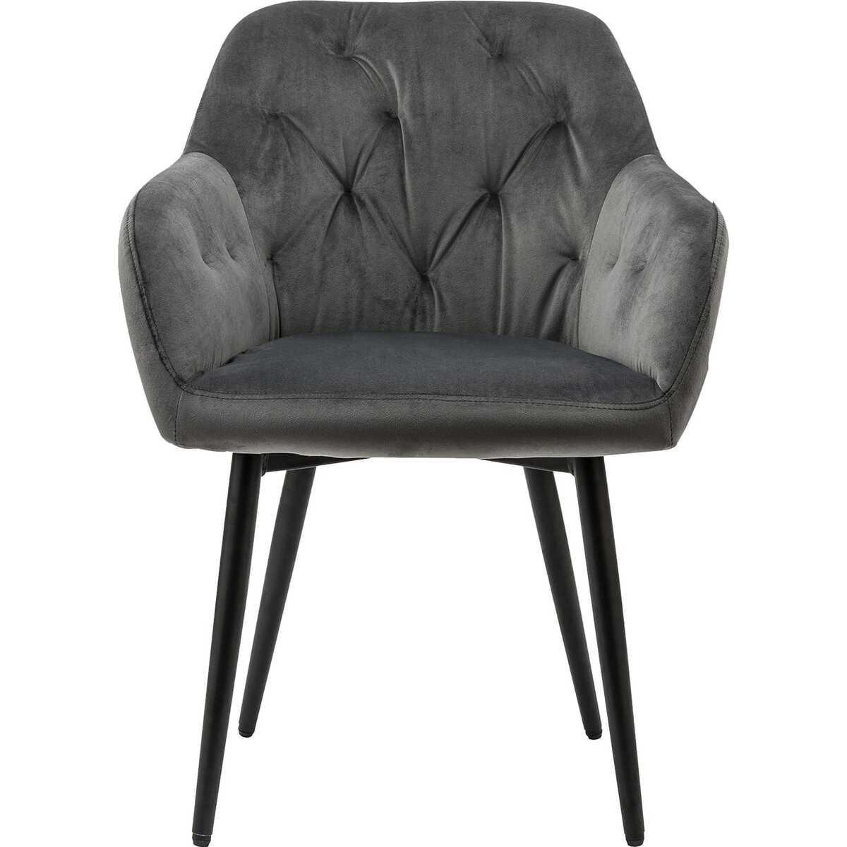 Poltrona con cuciture a bottoni e rivestimento in velluto (100% poliestere).Gambe della sedia in metallo verniciato a polvere nero.