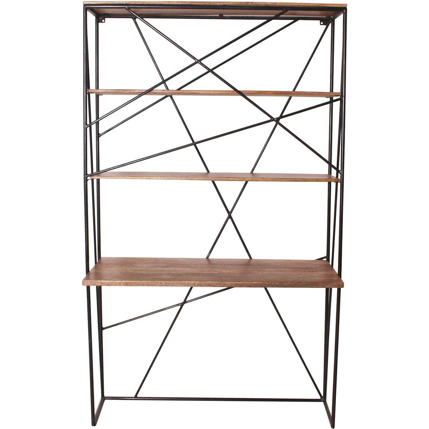 Segreteria in legno di mango, struttura in metallo nero, 4 ripiani naturali.