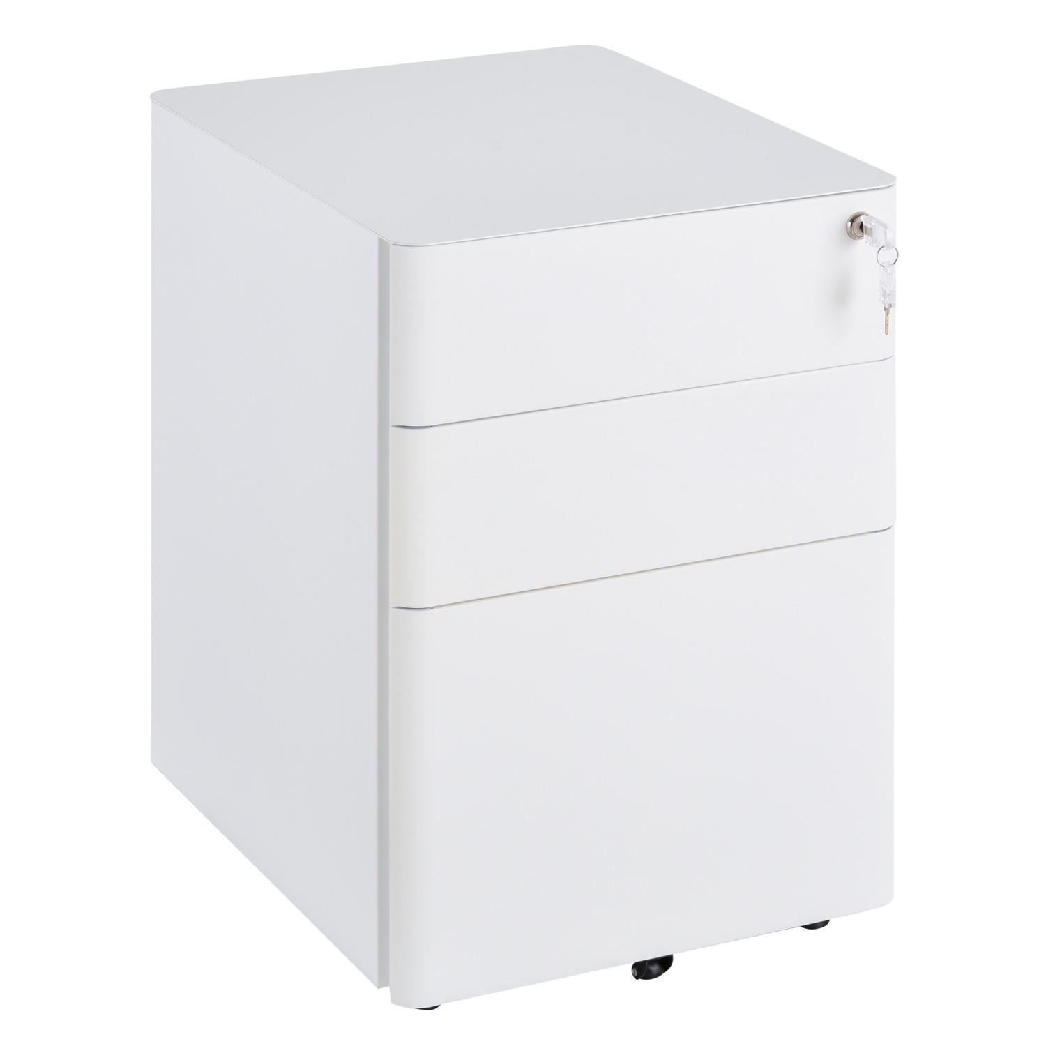 Northio, Mobile Schedario Con Ruote E 3 Cassetti, Armadietto Da Ufficio, Acciaio, Bianco, 39X48X59Cm
