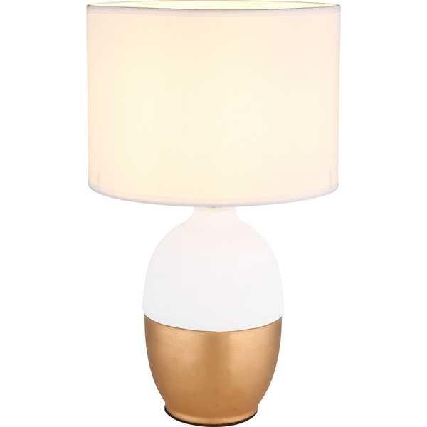 Lampada da tavolo ceramica bianca, ceramica color oro, tessuto bianco, cavo PVC nero, interruttore basculante sul cavo, : 250mm, H: 430mm, lunghezza cavo 1500mm, escl.1x E14 40W 230V.
