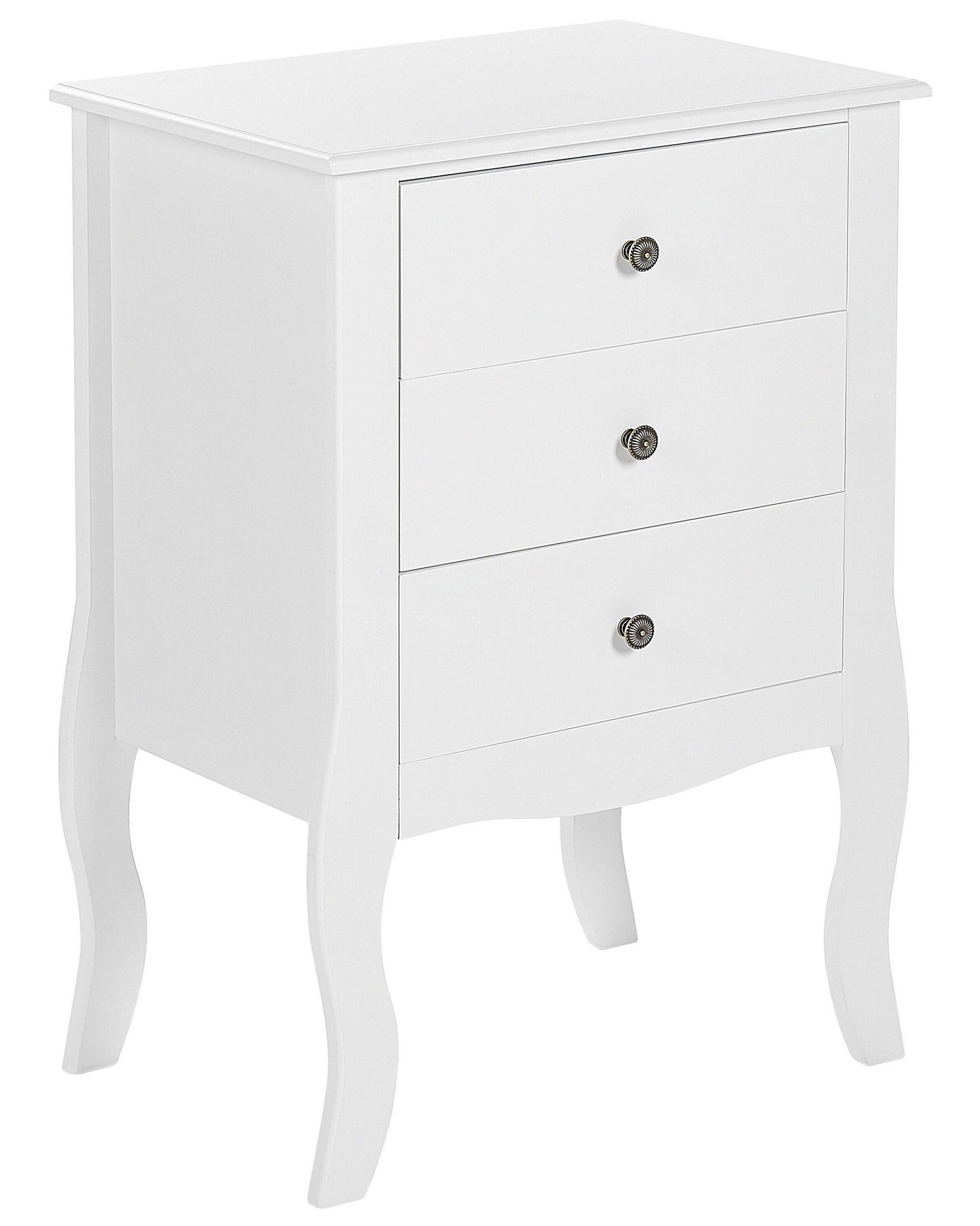 Comodino scandinavo con pratici cassetti. Questo bellissimo comodino in stile scandinavo sarà un'aggiunta perfetta per ogni camera da letto moderna o minimalista. Realizzata in resistente MDF, comprende una finitura in bianco classico. Il design semplice del comodino è accentuato dalle gambe ricurve donano un look tradizionale all'intera struttura. Presenta inoltre tre ampi cassetti che ti permetteranno di tenere a portata di mano tutto ciò che necessiti.