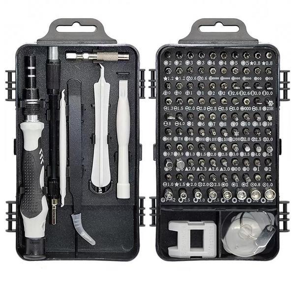 Diventa l'eroe del gruppo di amici e ripara i telefoni cellulari tuoi e dei tuoi amici con l'aiuto di questa cassetta degli attrezzi contenente 111 parti per la riparazione di telefoni cellulari e altri dispositivi elettronici. Questo kit è composto da strumenti speciali per la riparazione mobile, oltre a un'impugnatura per cacciavite e 98 punte diverse. Ottieni anche un magnetizzatore, anche uno smagnetizzatore, che facilita l'avvitamento. Porta con te il kit degli attrezzi, che viene fornito in una cassetta degli attrezzi compatta, ovunque tu vada e assicurati di non dover sopportare la rottura dell'elettronica più a lungo del necessario.