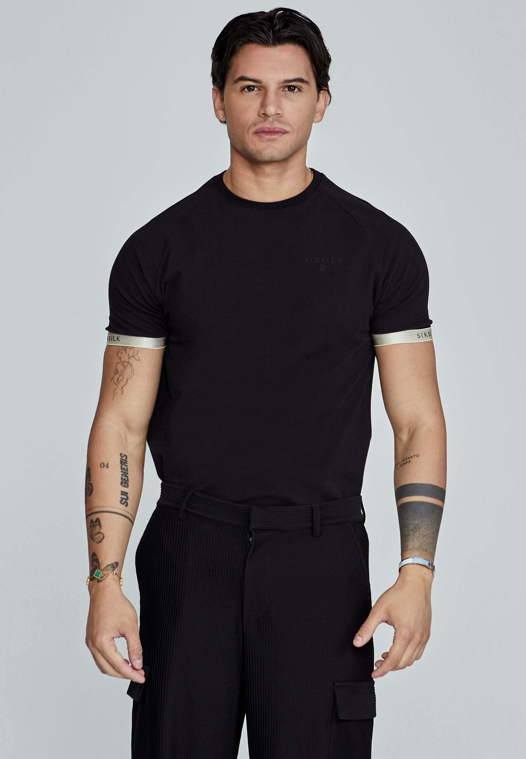 La T-shirt Tech in nero combina un design moderno con un'elevata funzionalità. La vestibilità muscle fit e il materiale elasticizzato assicurano una silhouette aderente al corpo e la massima libertà di movimento. Con una stampa logo gommata, maniche raglan e polsini elastici distintivi con marchio, questa T-shirt è sia elegante che comoda.