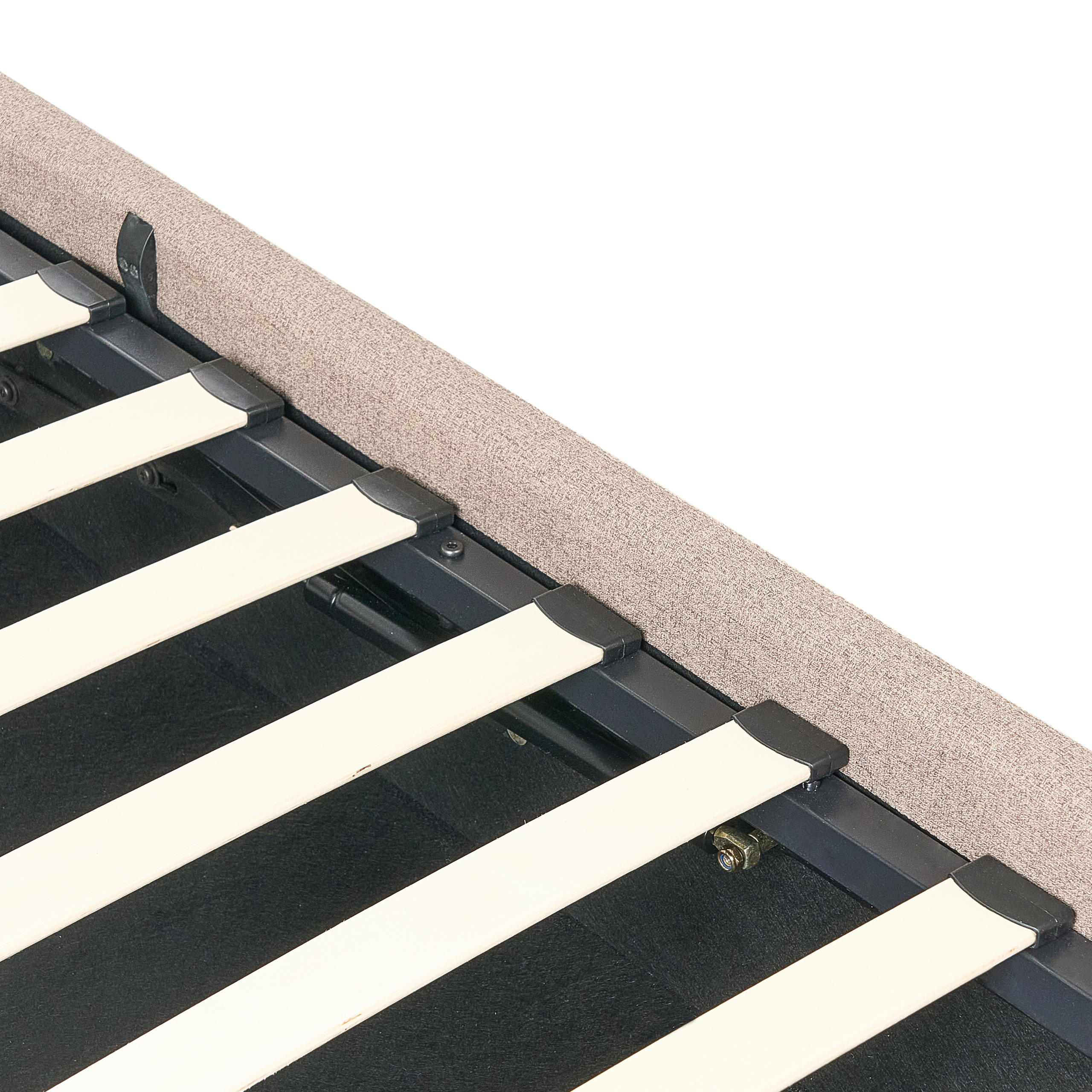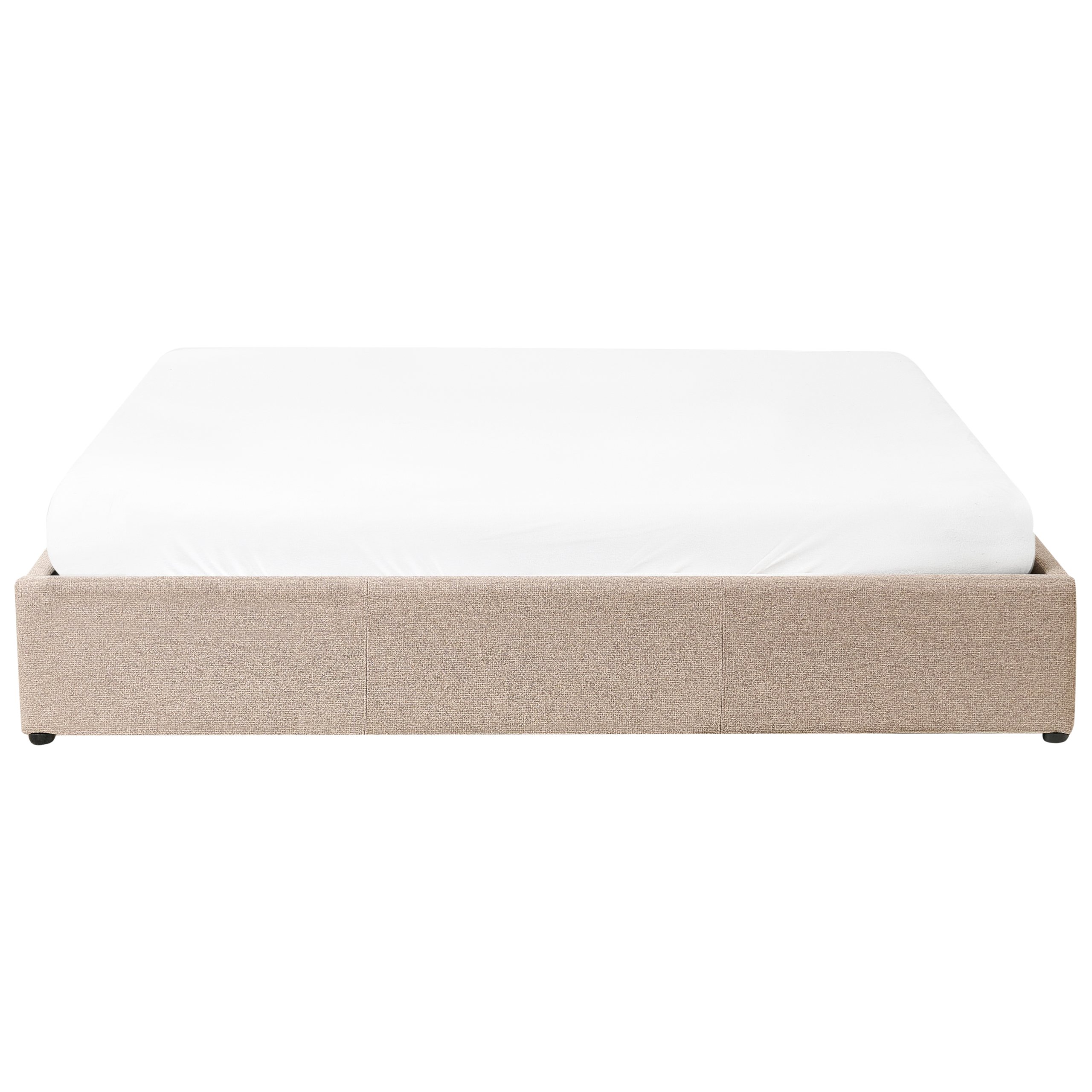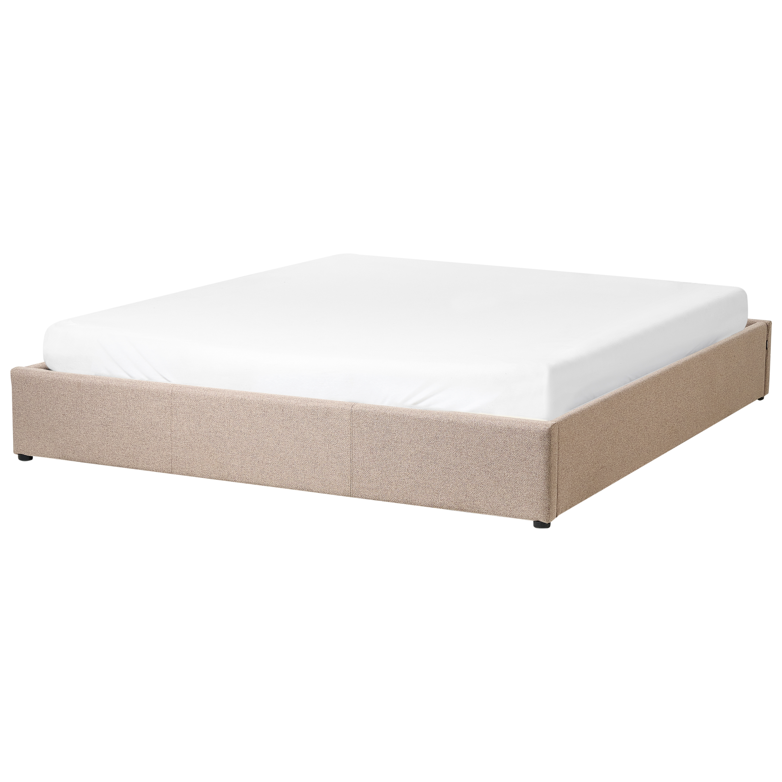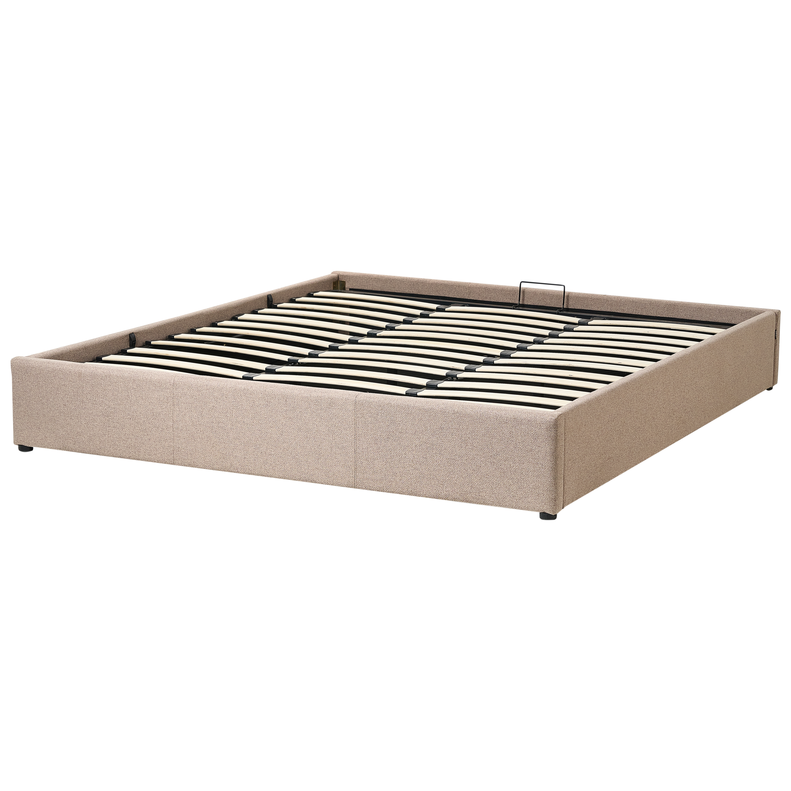 Struttura letto rivestita in tessuto con un pattern simile al lino con contenitore e rete a doghe. Porta l'eleganza in camera da letto con questo letto con rete a doghe dal design classico. Realizzato in tessuto di altissima qualità, presenta una solida struttura pensata per un riposo ottimale e una distribuzione del peso uniforme, mentre il suo design senza testiera e le dimensioni compatte, ne fanno un arredo davvero originale. Grazie all'ampio e capiente vano contenitore, ottimizzerai lo spazio, guadagnando praticamente un altro armadio.