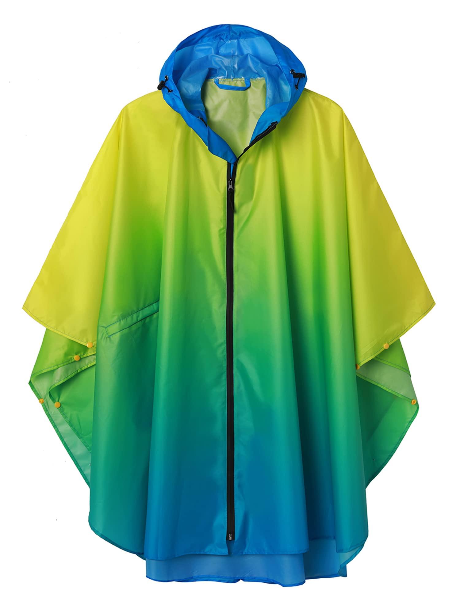 Questa mantella antipioggia con cappuccio è dotata di una cerniera a tutta lunghezza per una facile vestizione e rimozione, offrendo una protezione affidabile dagli elementi. Il suo design riutilizzabile la rende una scelta pratica per varie attività all'aperto.
