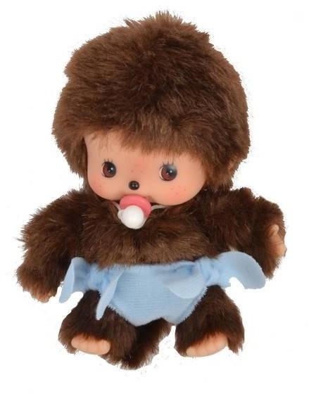 Monchhichi, Sekiguchi 235370 Original Bebichhichi Junge, aus braunem Plüsch, mit blauer Windel, ca. 15 cm