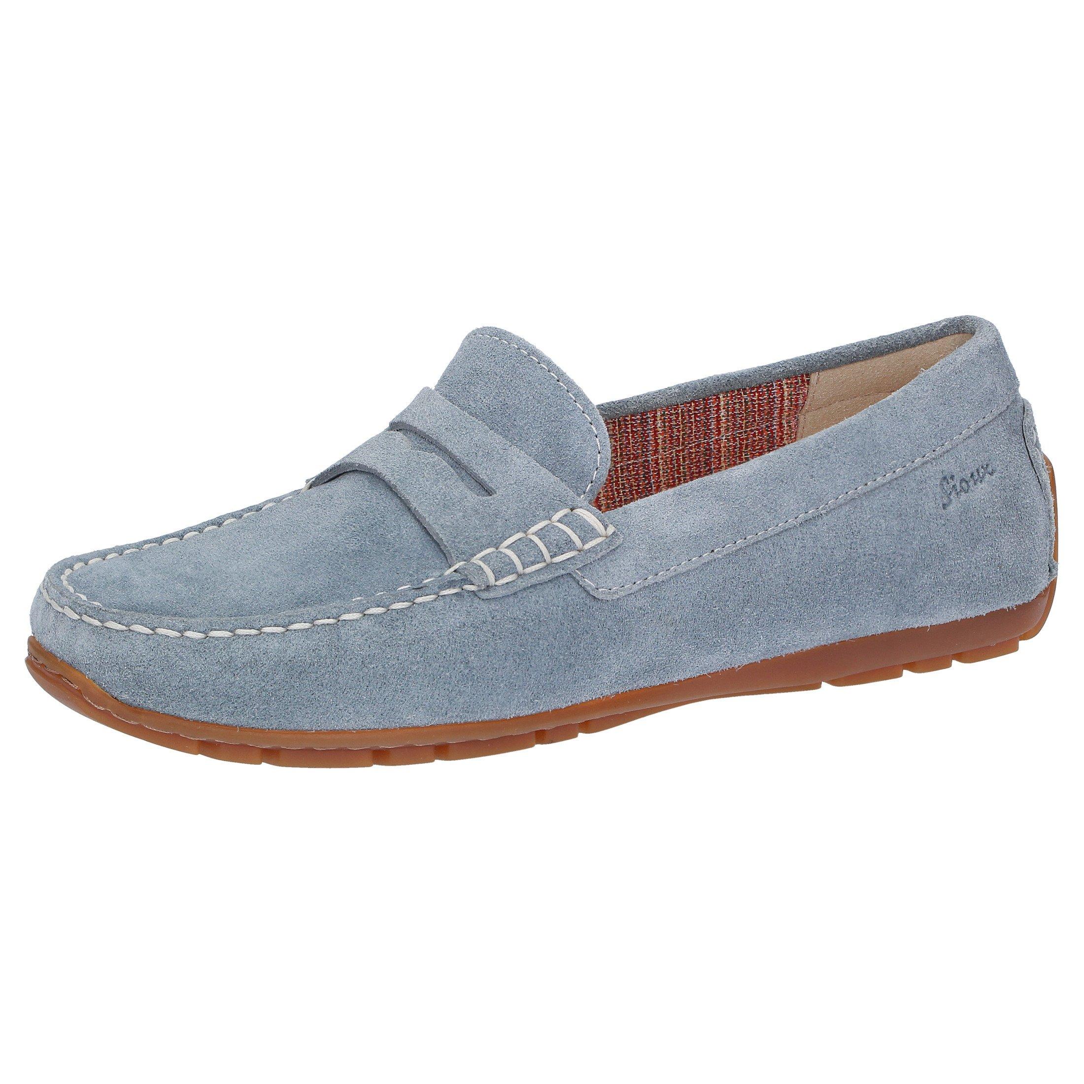 Questa pantofola piatta da donna presenta una costruzione a mocassino realizzata in morbida pelle scamosciata di vitello con un'elegante finitura penny loafer. È completamente foderata in tessuto e include una soletta interna in pelle di vitello conciata al vegetale, morbidamente imbottita, che può essere rimossa e sostituita con un inserto personalizzato. La suola in gomma morbida e sottile non ha dislivello del tacco, e la comoda calzata G assicura una libertà ottimale per le dita dei piedi.