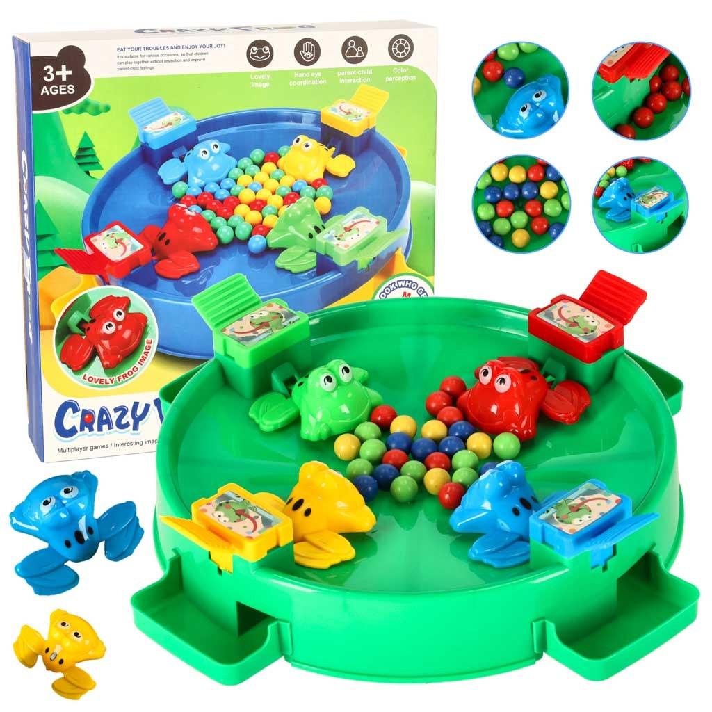 Un gioco arcade: rane affamate. Ogni giocatore deve controllare una rana colorata e cercare di mangiare quante più palline possibile. Per vincere la partita serve la giusta strategia e tanta destrezza. Materiale: plastica. Età: 3+. Dimensioni della tavola: 30,5 cm x 6,6 cm.