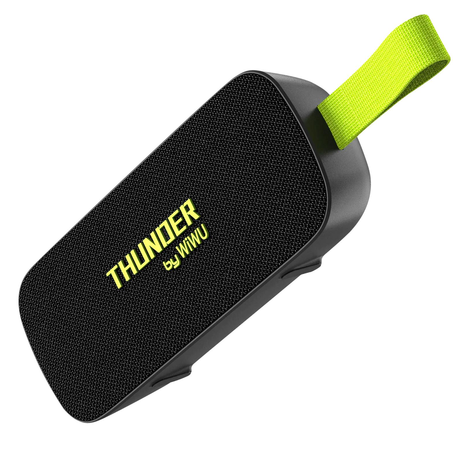 Altoparlante wireless Bluetooth serie Thunder H2 di WiWU. Bassi potenti e suono chiaro. Connessione Bluetooth 5.3 con portata di 10 metri. Controlli facili. Porta USB e slot per scheda SD. Autonomia 4 ore per carica. Resistente allacqua IPX7. Moschettone integrato. Formato leggero e portatile.