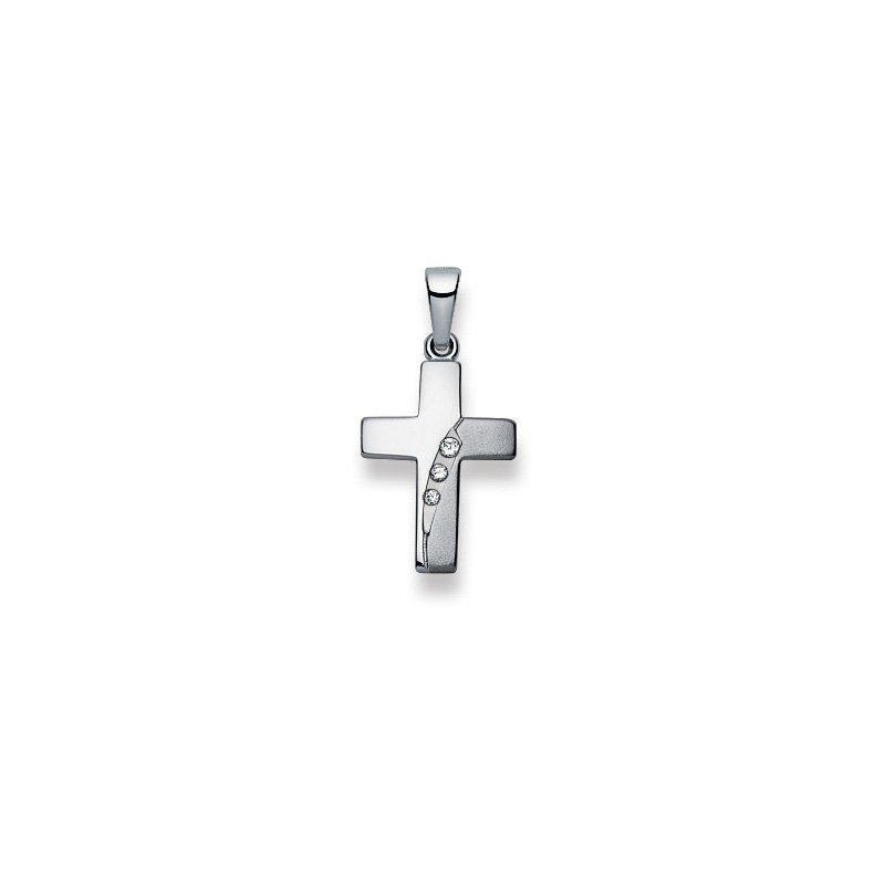 MUAU Schmuck Anhänger Kreuz Weissgold 750 Diamant 0.05ct. 24x12mm