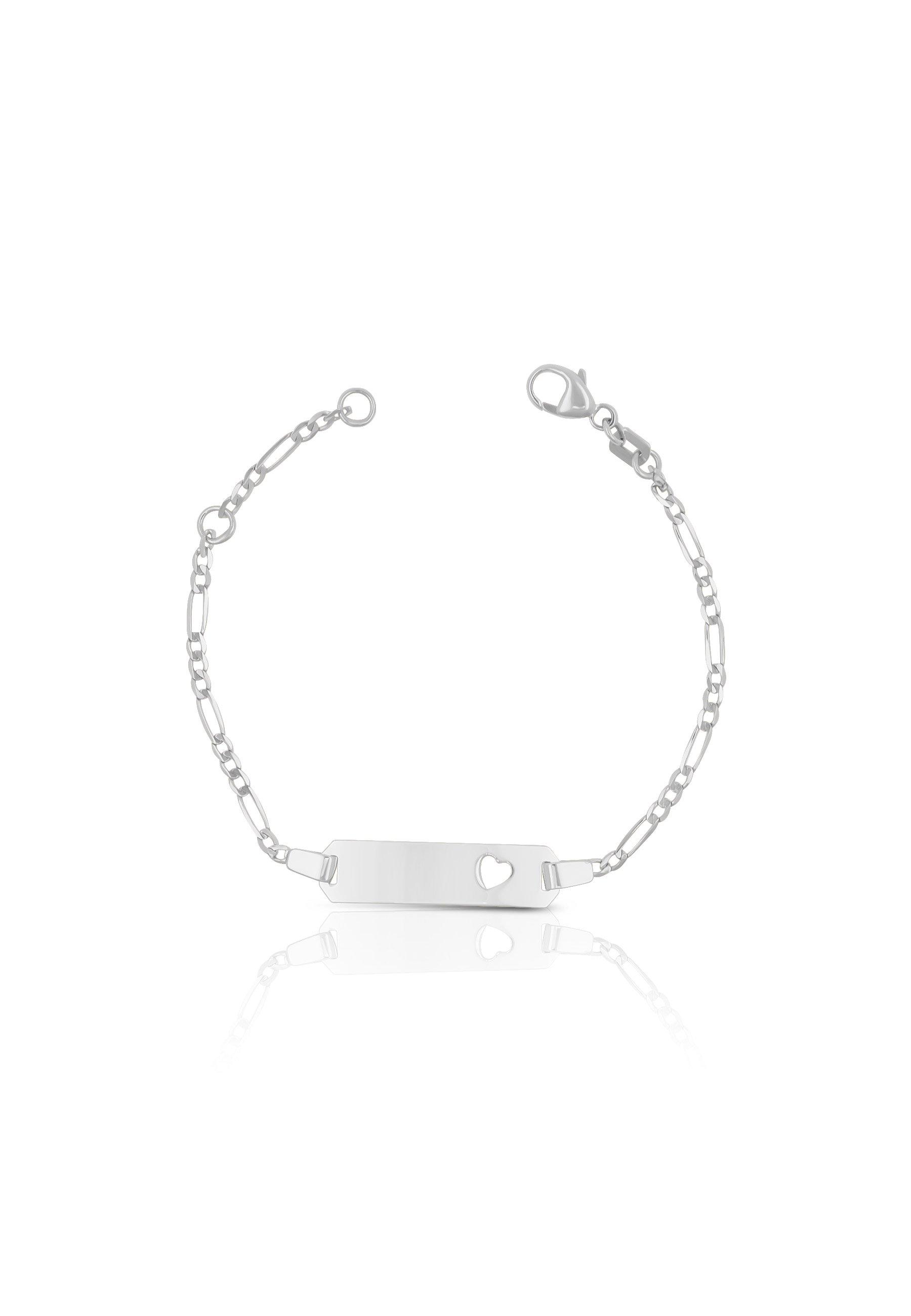 MUAU Schmuck, Bébé Bracelet Herz Figaro Weissgold 750, 14cm Gravurplatte 2.1cm