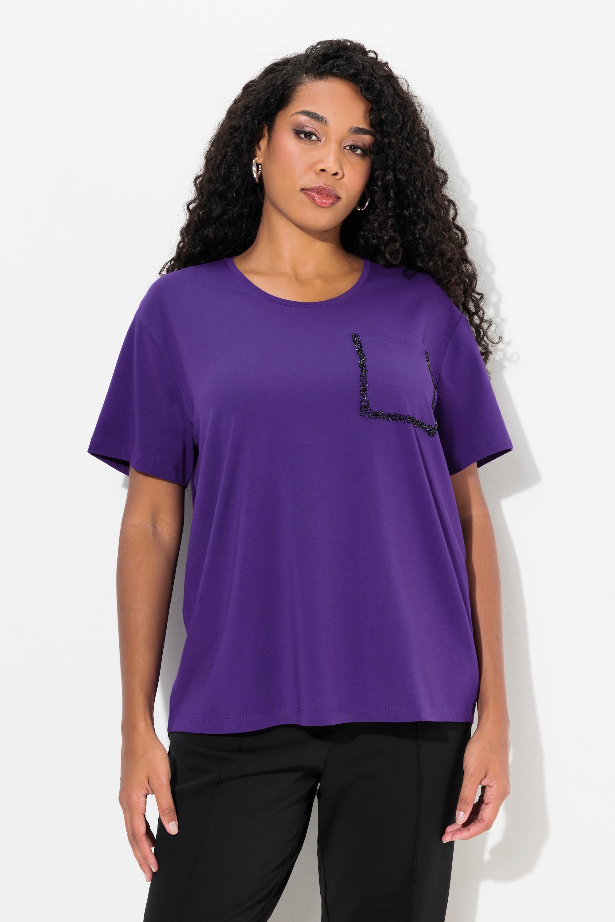 Ulla Popken T-Shirt Oversize Girocollo Mezze Maniche con Taschino Perline