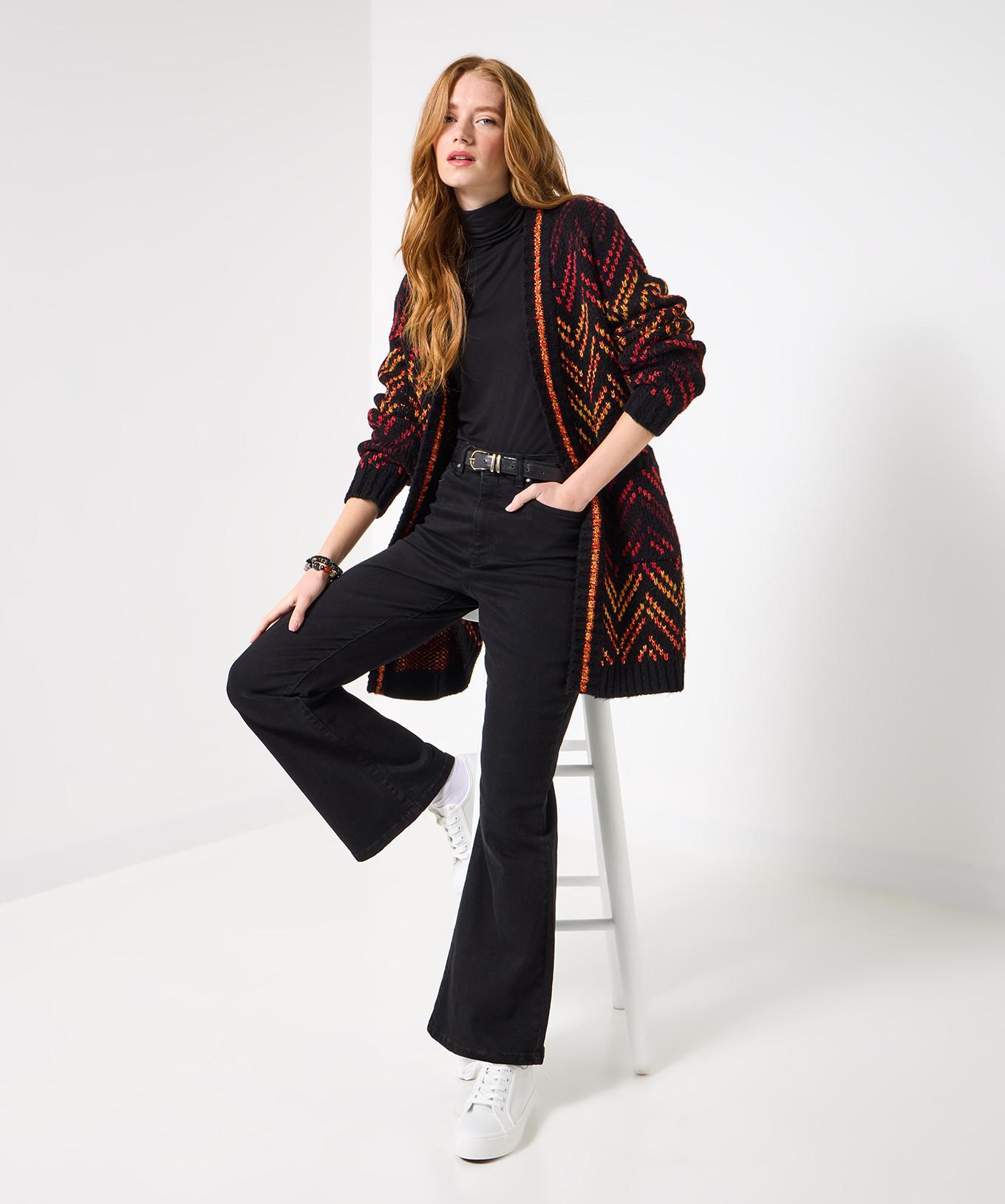 Questo cardigan aperto in maglia è un'aggiunta versatile a qualsiasi guardaroba, offrendo sia calore che stile. Il suo design presenta un motivo sorprendente che aggiunge un tocco di vivacità a qualsiasi outfit. La vestibilità rilassata assicura comfort, rendendolo adatto a varie occasioni. In rosso e giallo brillante, questo cardigan aperto è ideale per serate accoglienti accanto al camino.